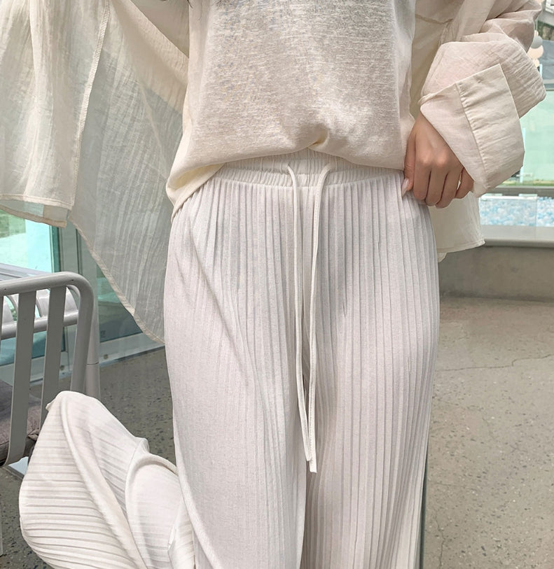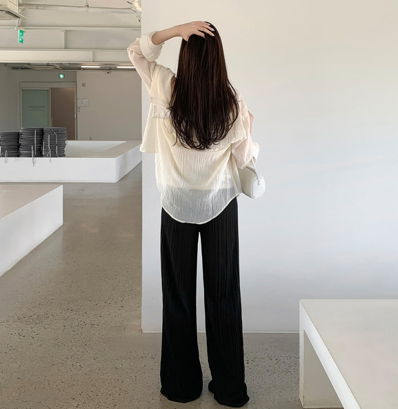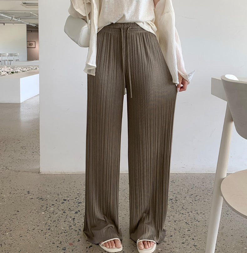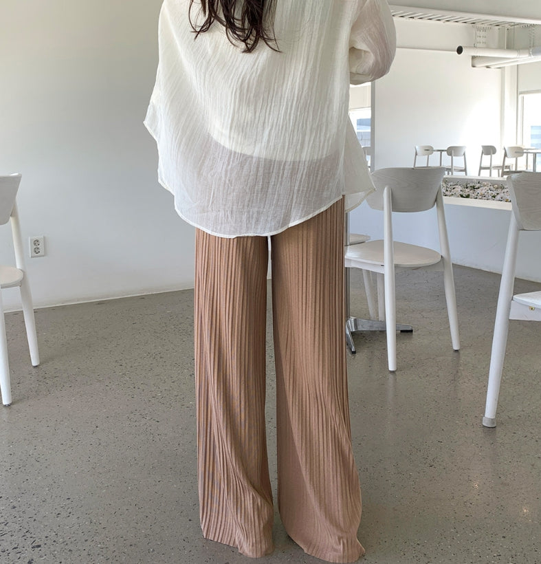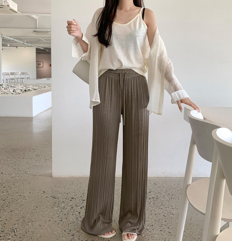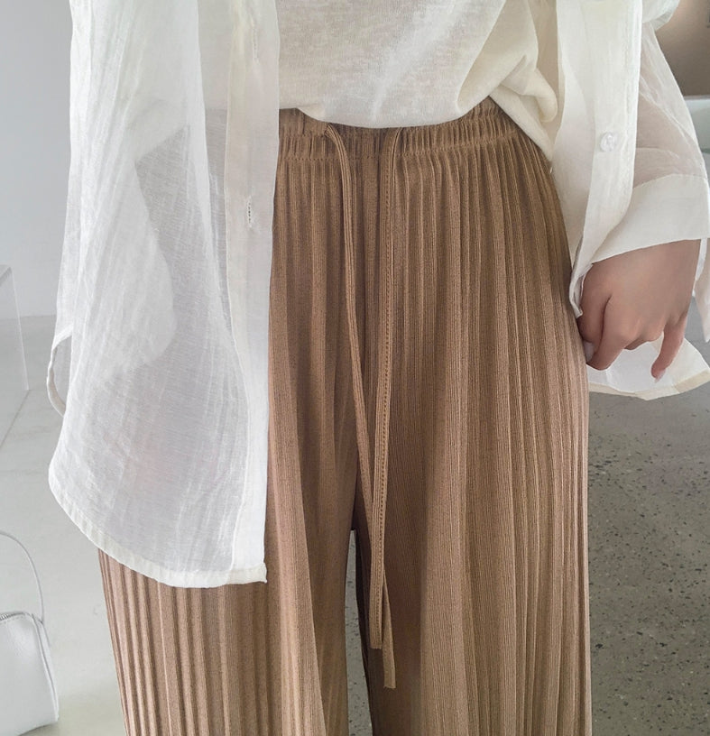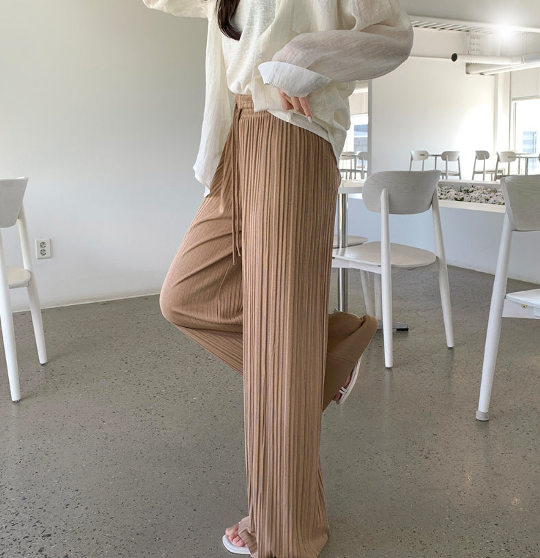 Tight Pleats Slim Semi-Wide Straight Banding Pants