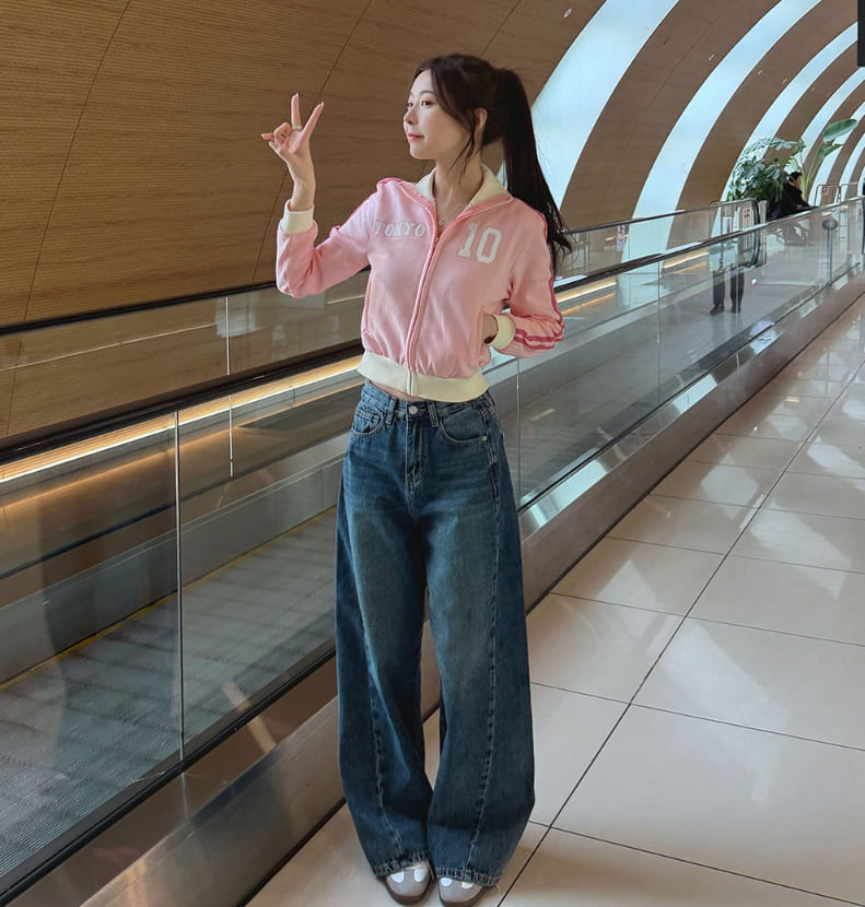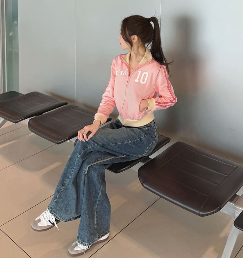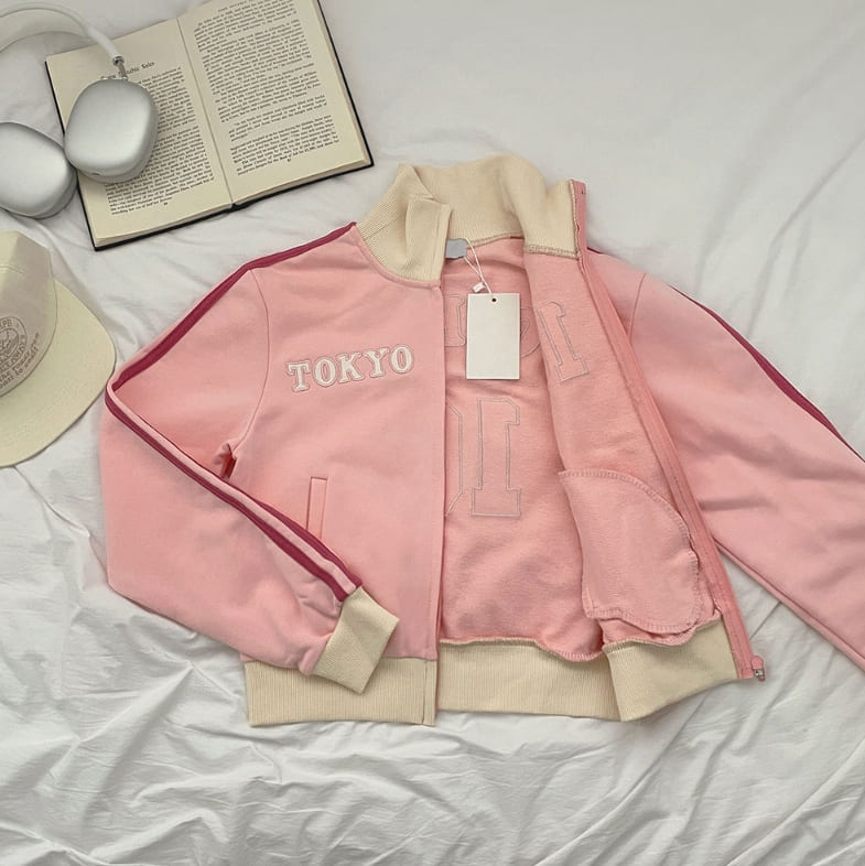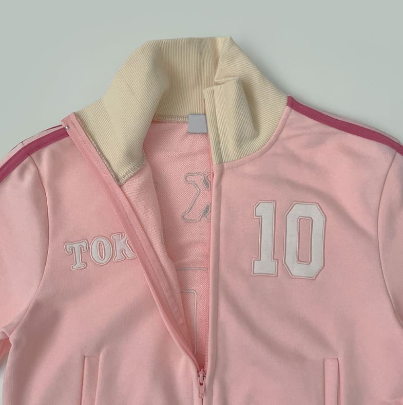 トウキョウレタリングハイネック配色カラーピンククロップジャージ
