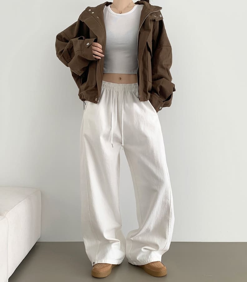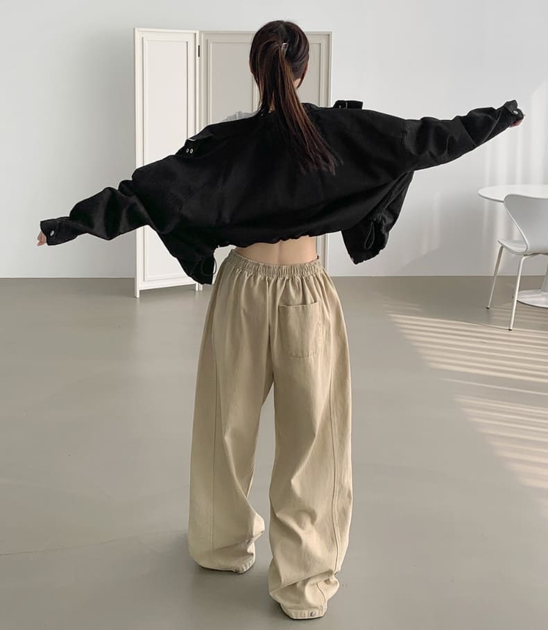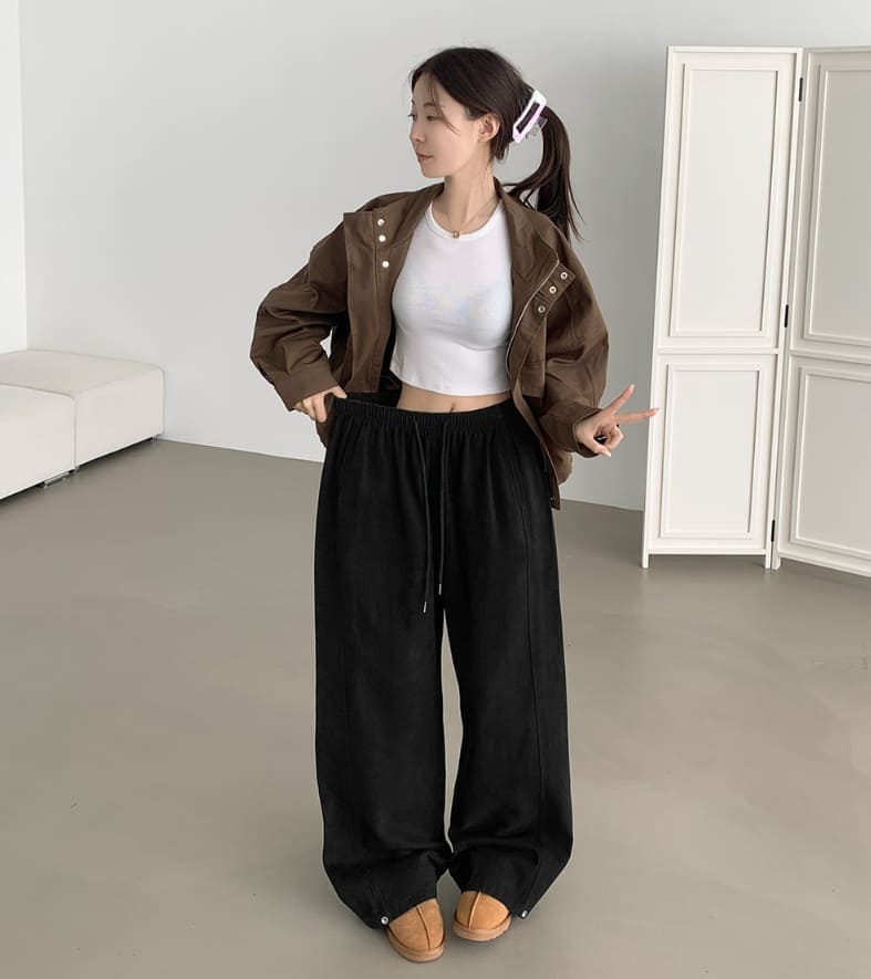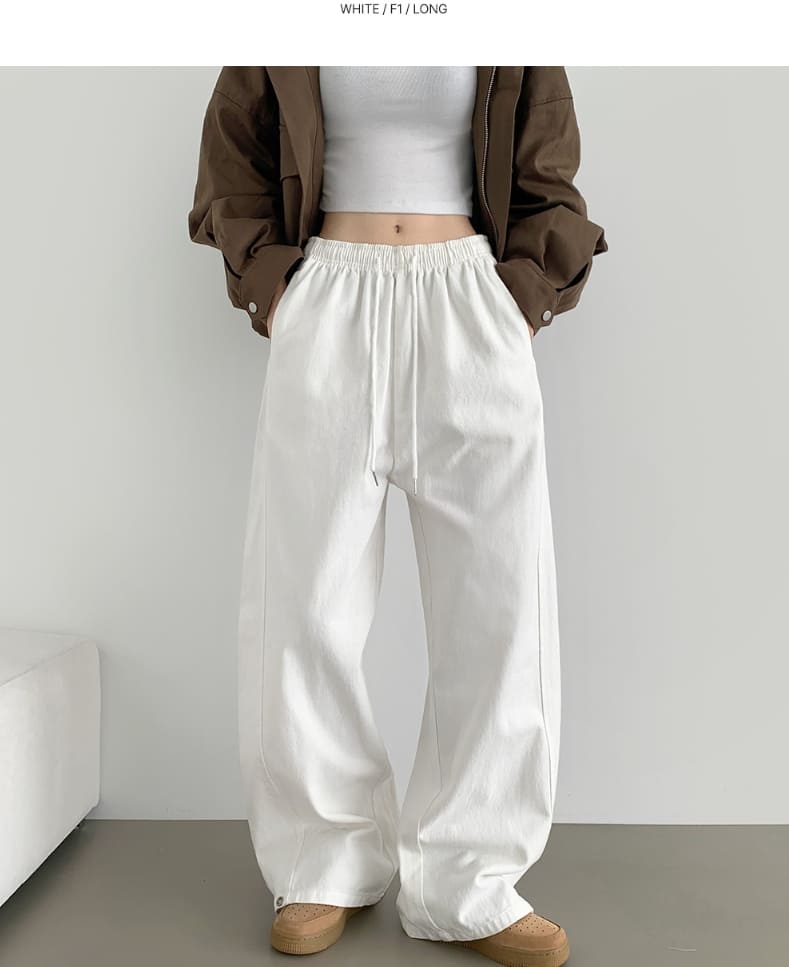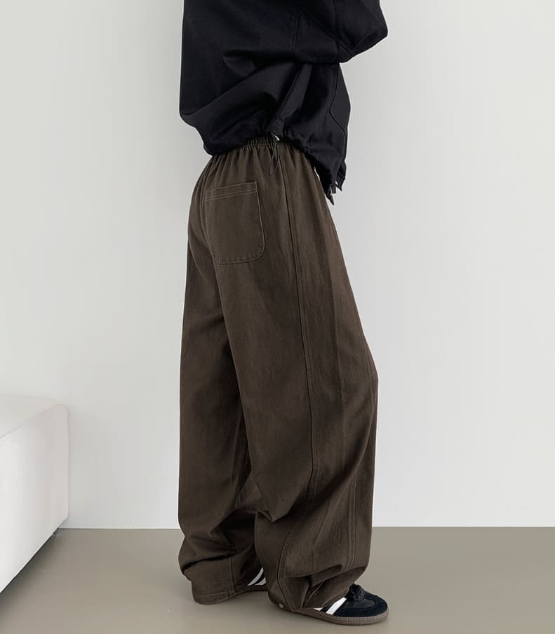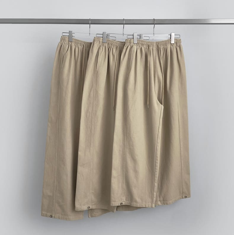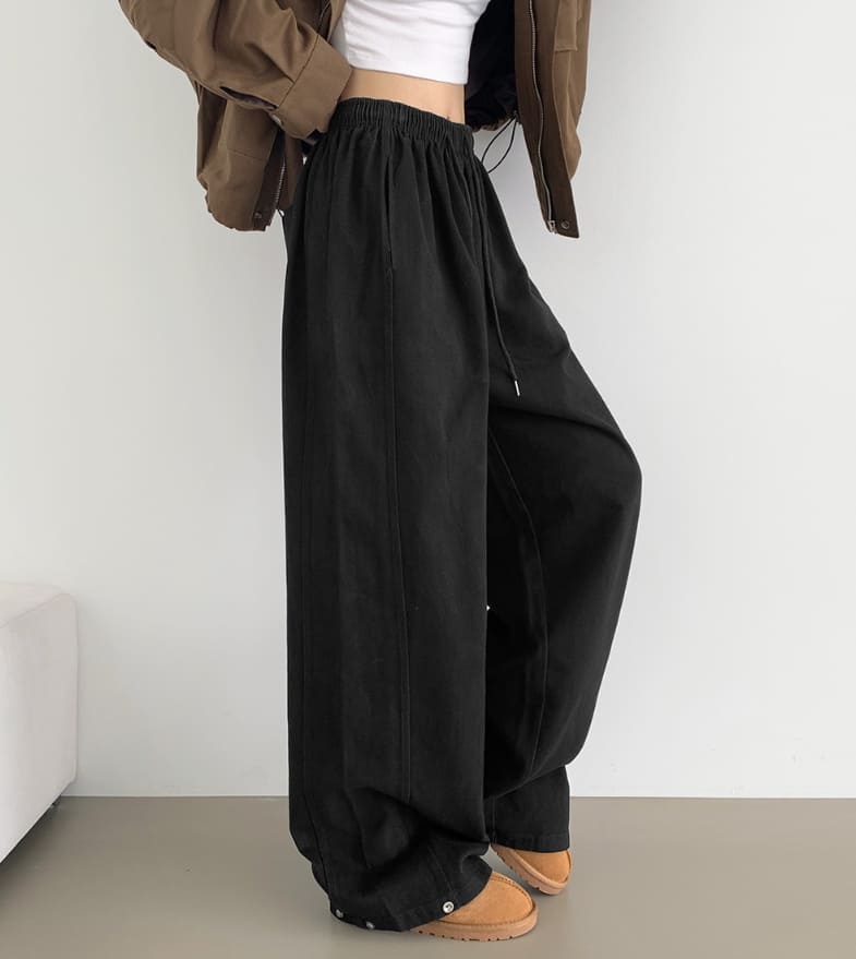 Two-Way Hem Snap Banding Diagonal Cut Wide Fit Cotton Pants