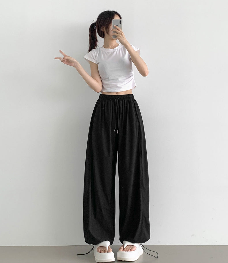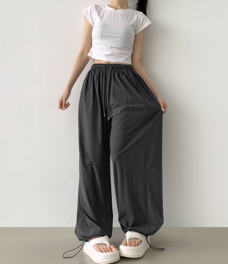 Two-way String Rustling Nylon Span Balloon Wide Banding Pants