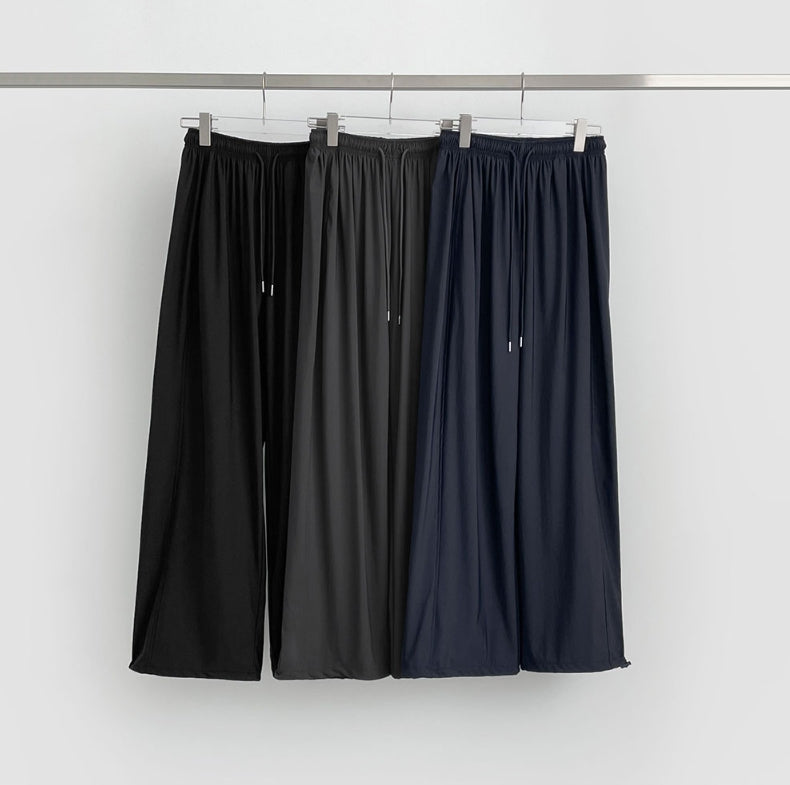 ツーウェイストリングラッスリングナイロンスパンバルーンワイドバンディングパンツ