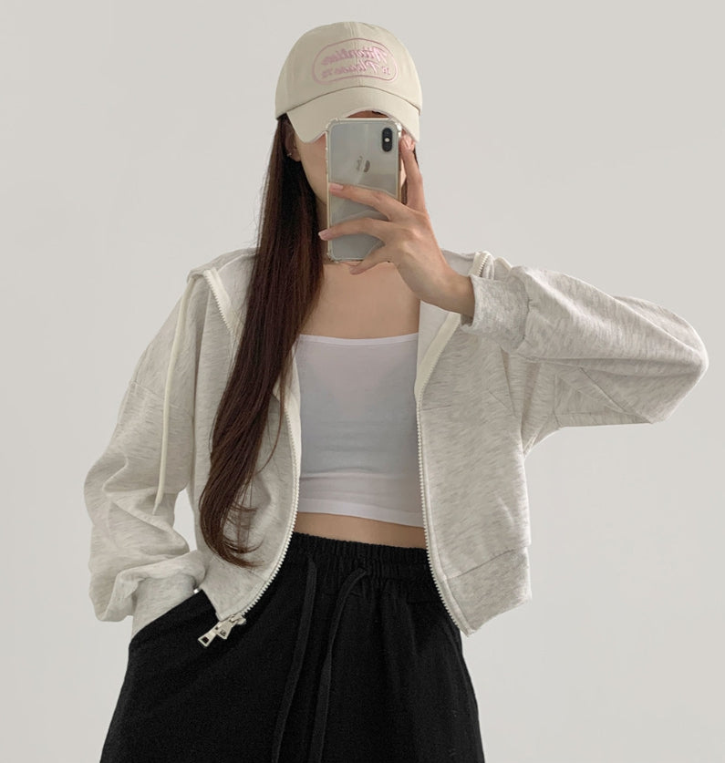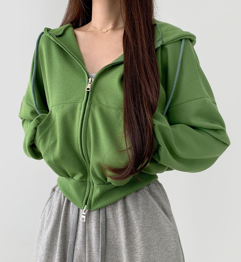 ツーウェイジッパーバルーンクロップフードジップアップ