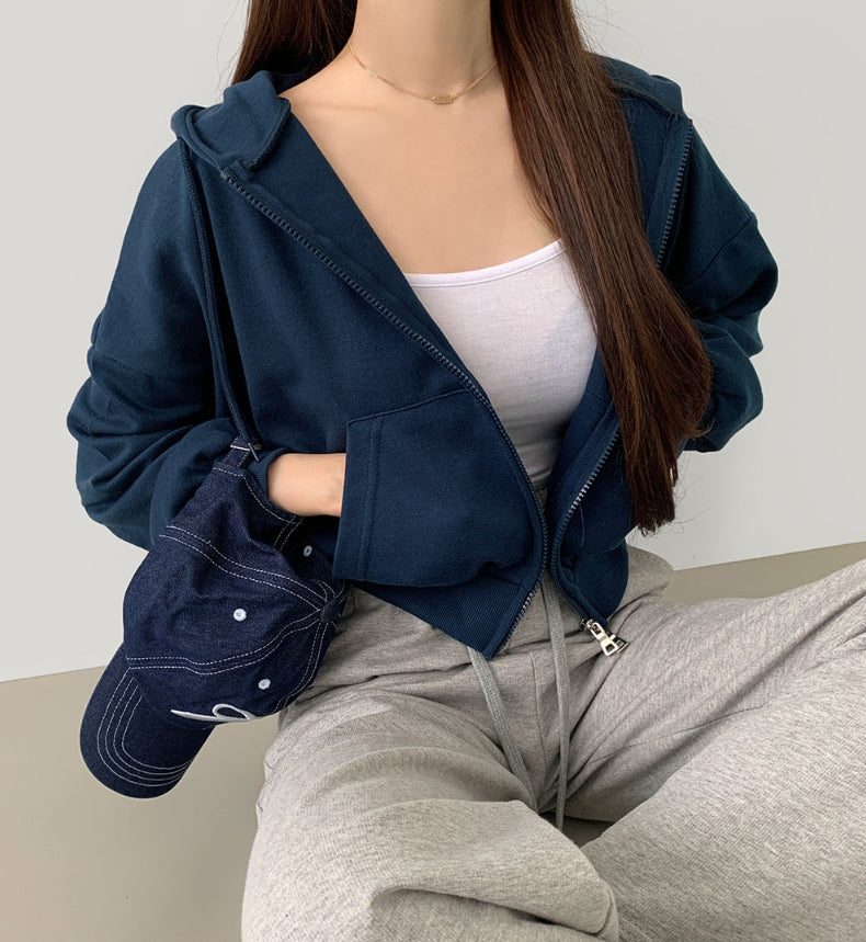 Two-Way Zipper Balloon Crop Hood Zip-Up