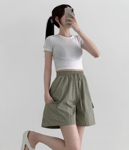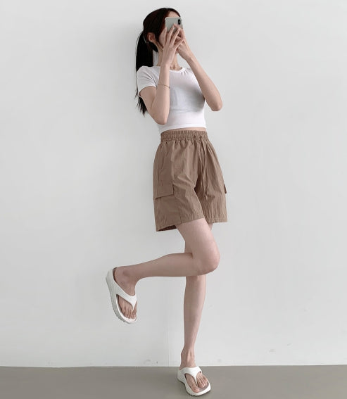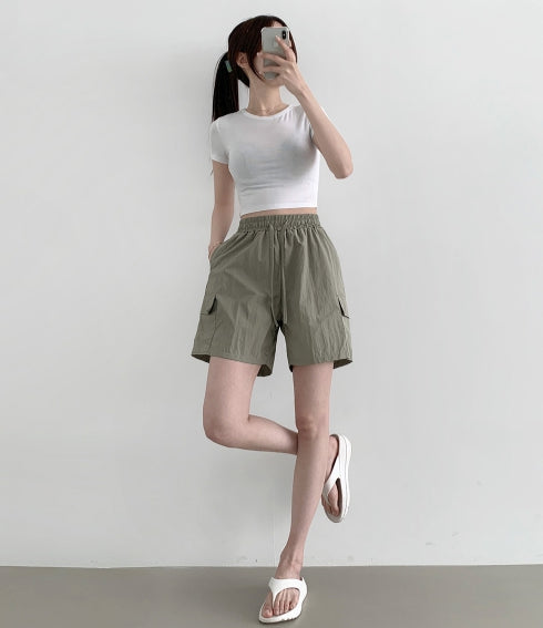 バケーションビーチサマーバンディングカーゴポケットナイロンショートパンツ