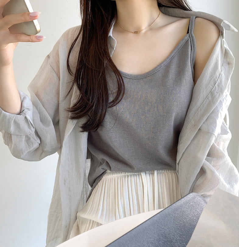 バケーションサマーストラップキャミソールルーズフィットシャツセット