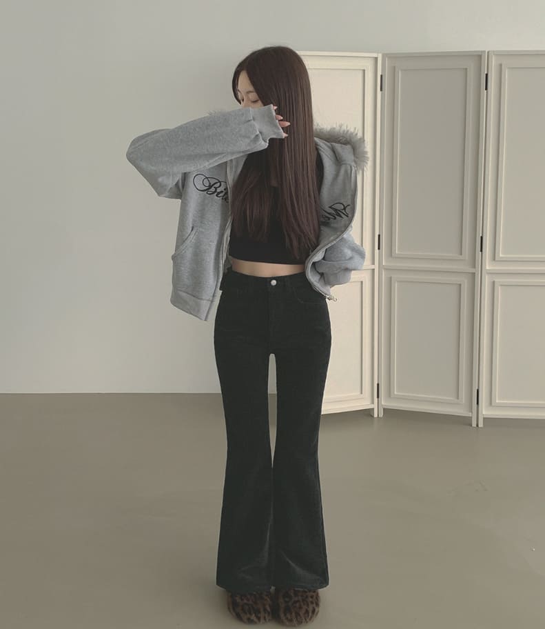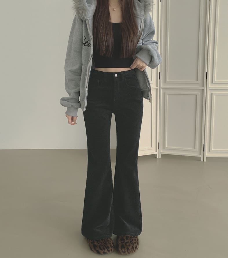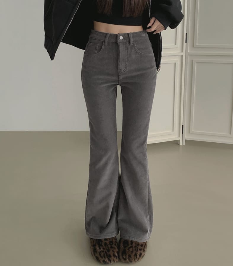 ベルベットコーデュロイ裏起毛スリムフィットブーツカットスパンパンツ