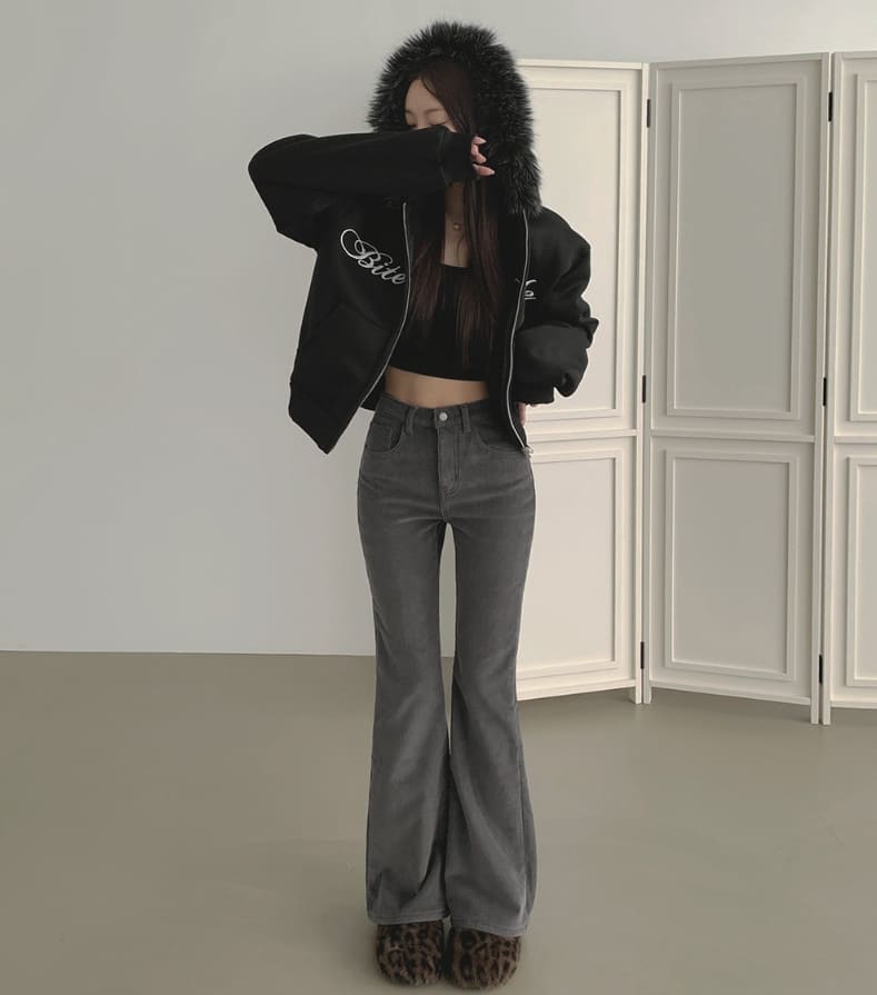 Velvet Corduroy Brushed Slim-Fit Bootcut Span Pants