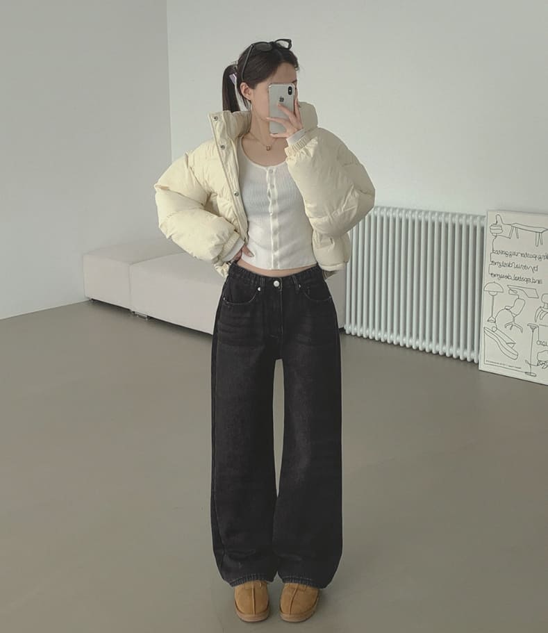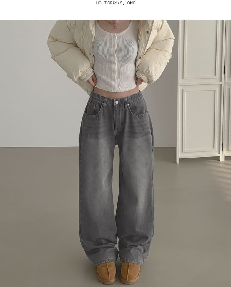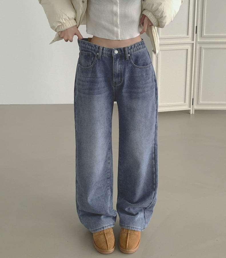 ウィンター裏起毛ワイドフィットバンディングデニムパンツ