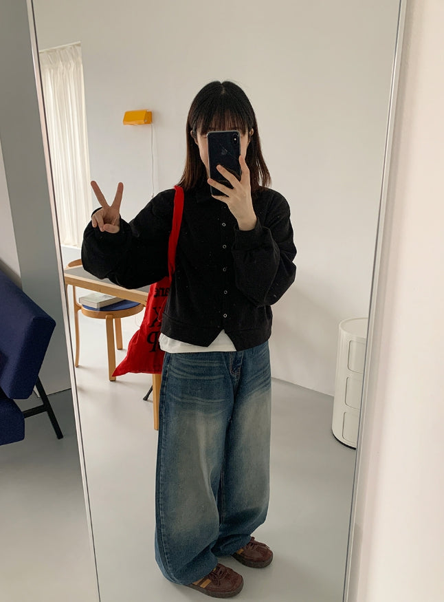 [BAONHAUS] Kaeki Cotton Collar Crop Cardigan