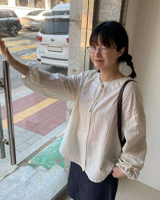 [BAONHAUS] Lulubo Shirring Round Stripe Blouse