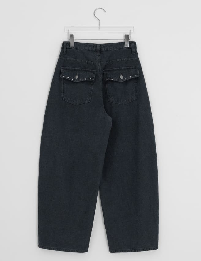 Biduge Washing Denim Balloon Wide Brushed Pants
