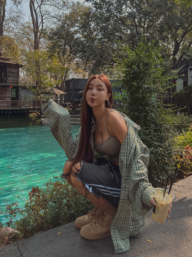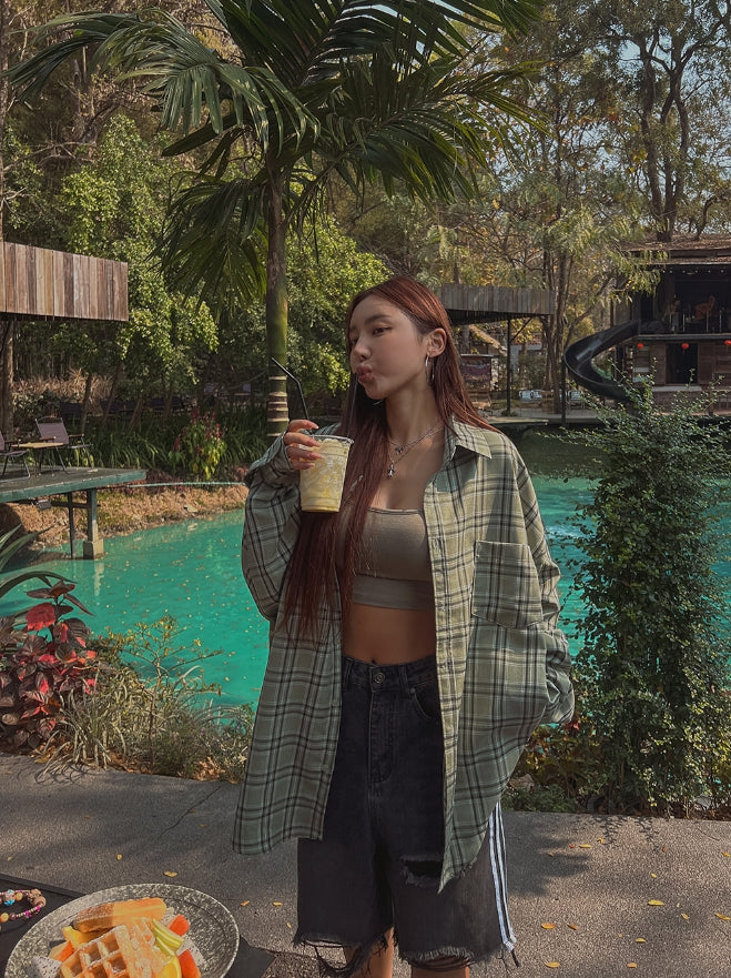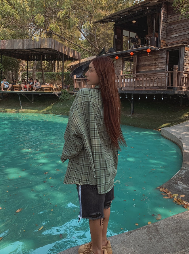 チェックスチェックオーバーフィットコットンシャツ