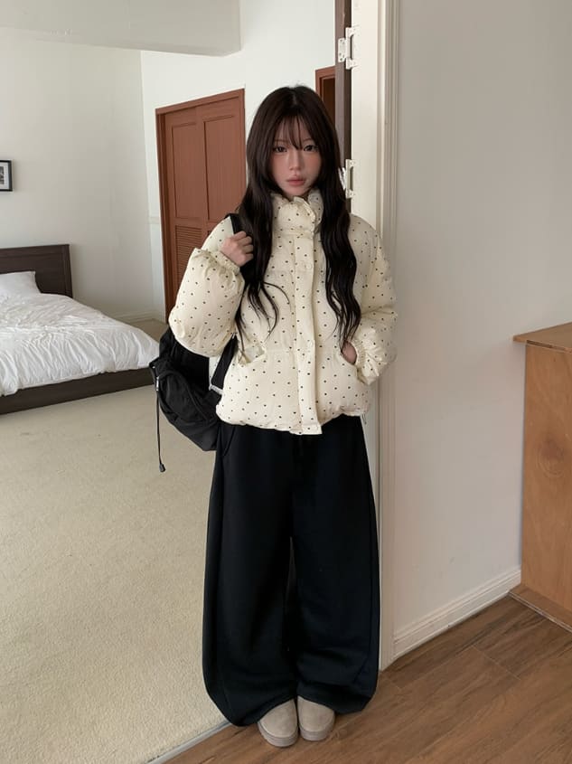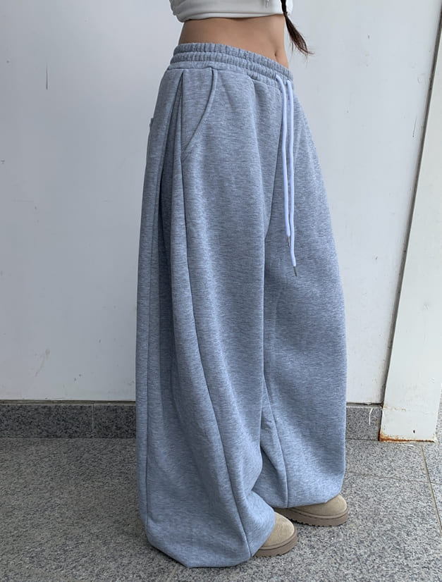 コビンサイドピンタック裏起毛ワイドトレーニングパンツ