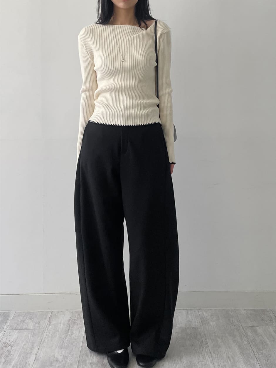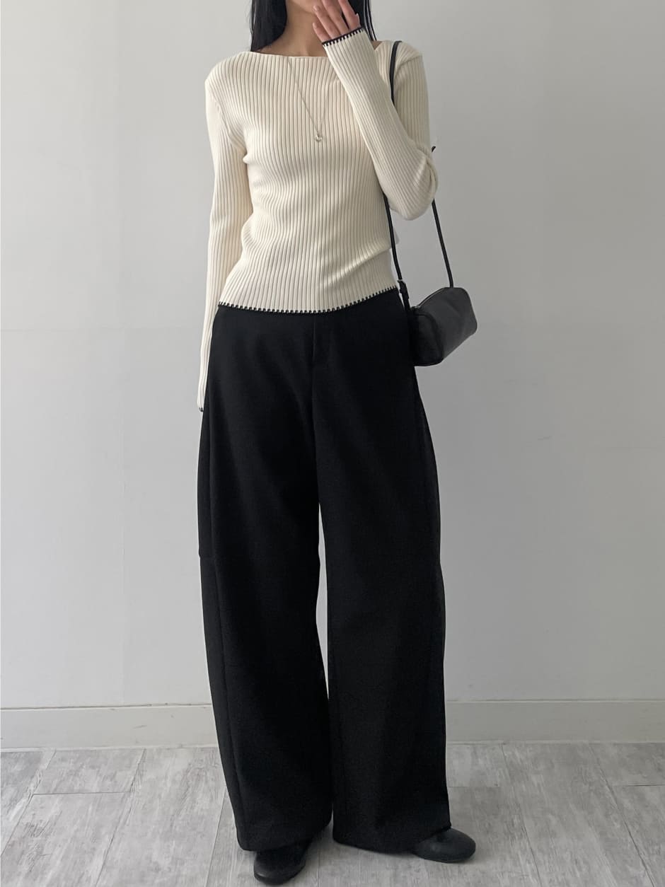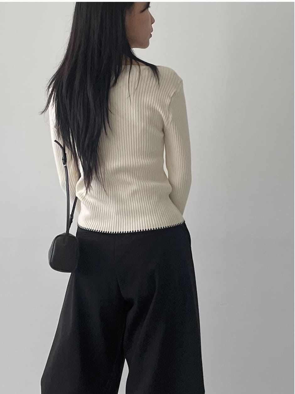 カラーリブニットTシャツ