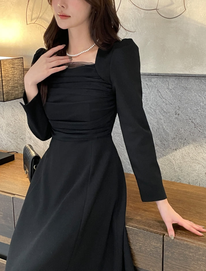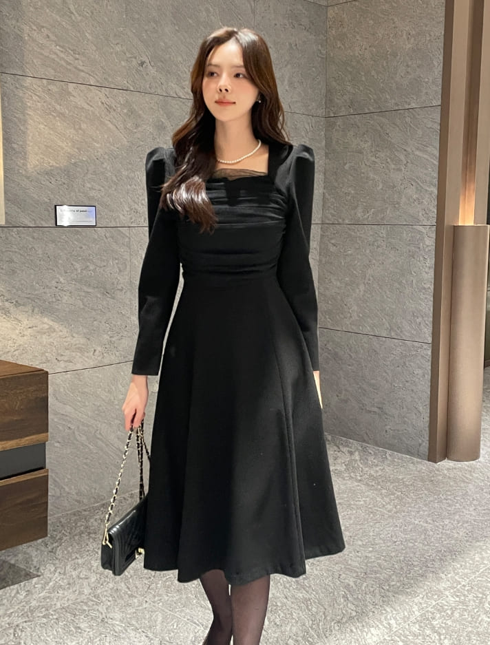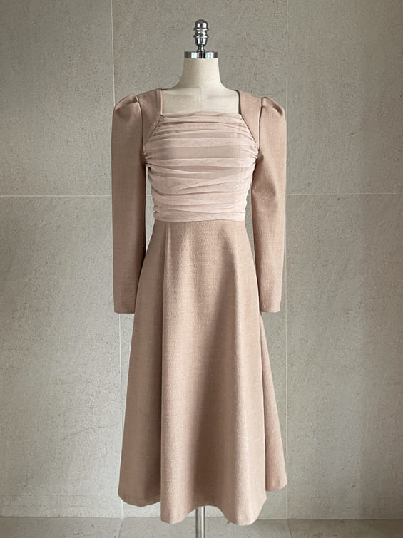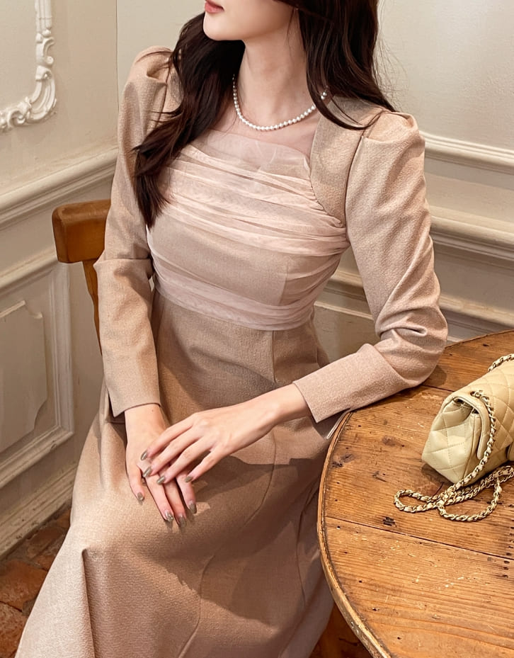 Deman Tulle Layered Span Tweed One Piece
