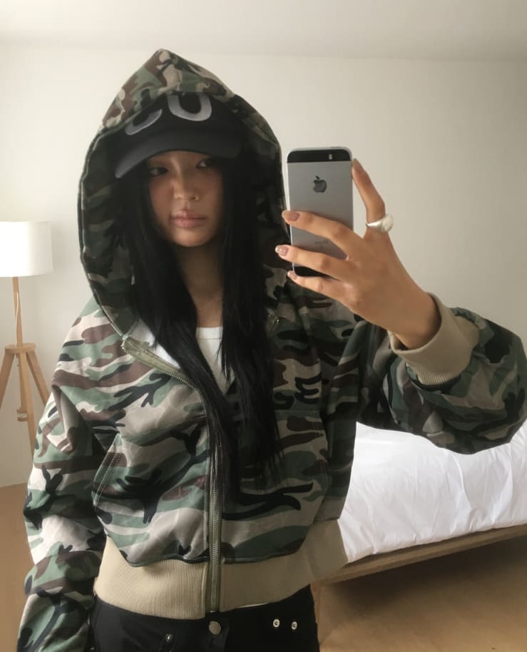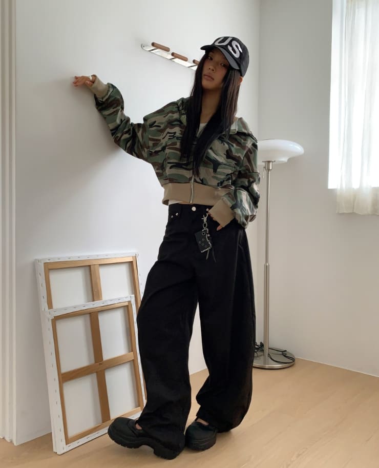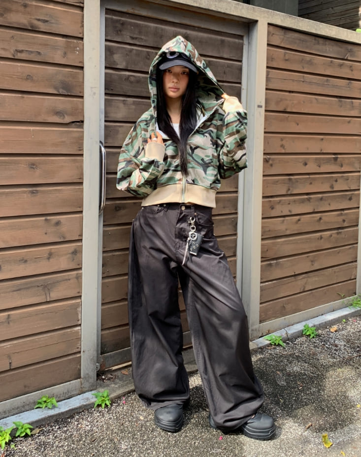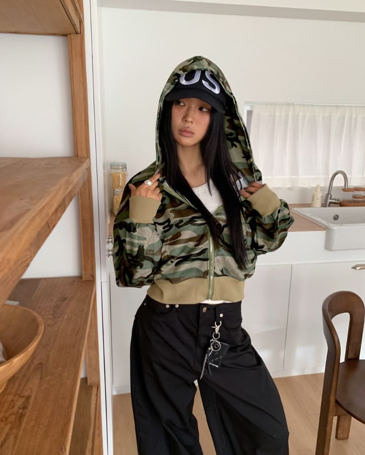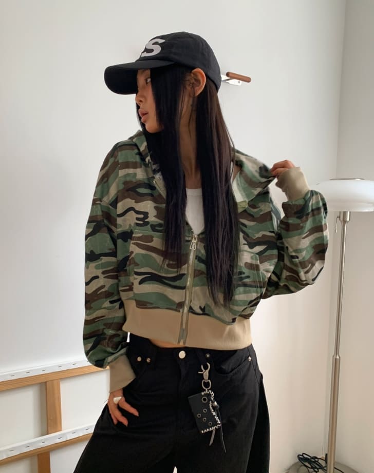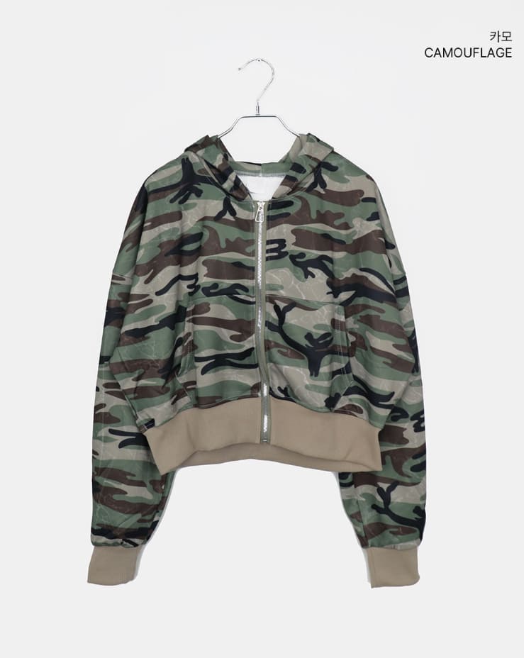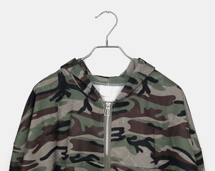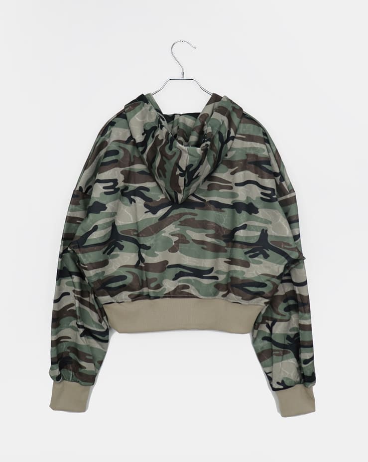 イーリングミリタリー迷彩ポケットクロップ長袖フードジップアップ