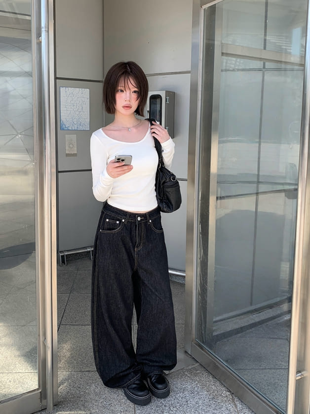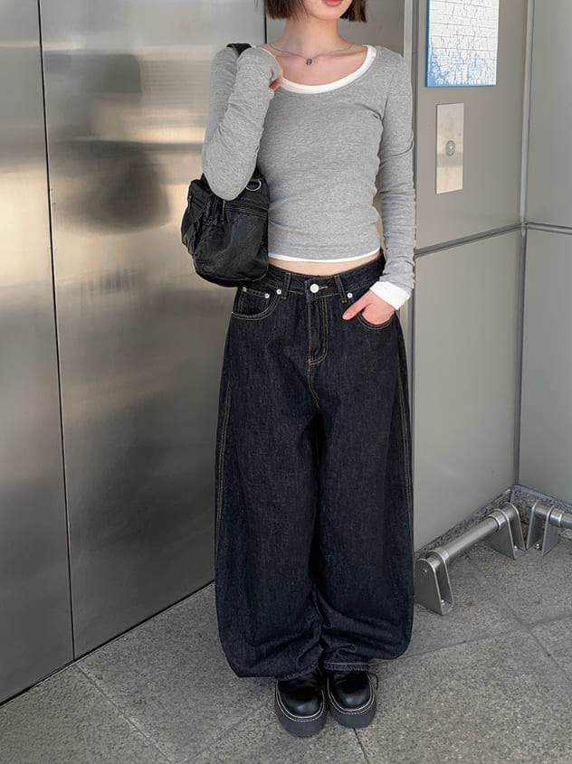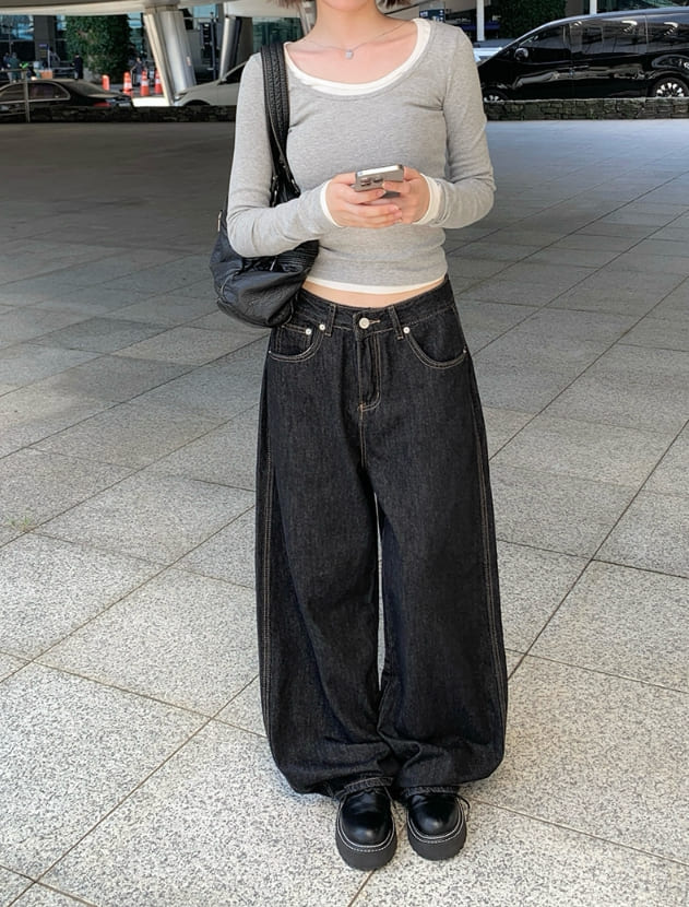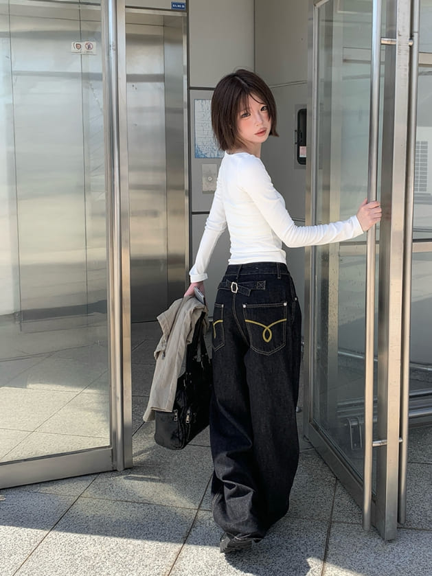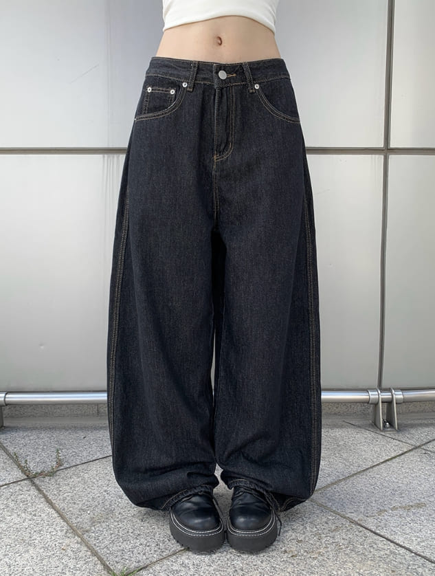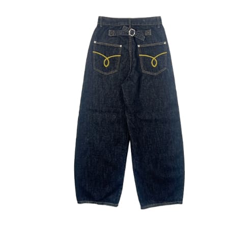 Emil Back Buckle Stitch Raw Denim Wide Pants