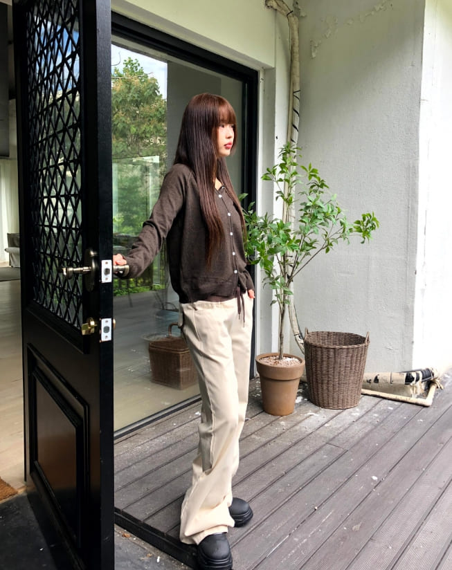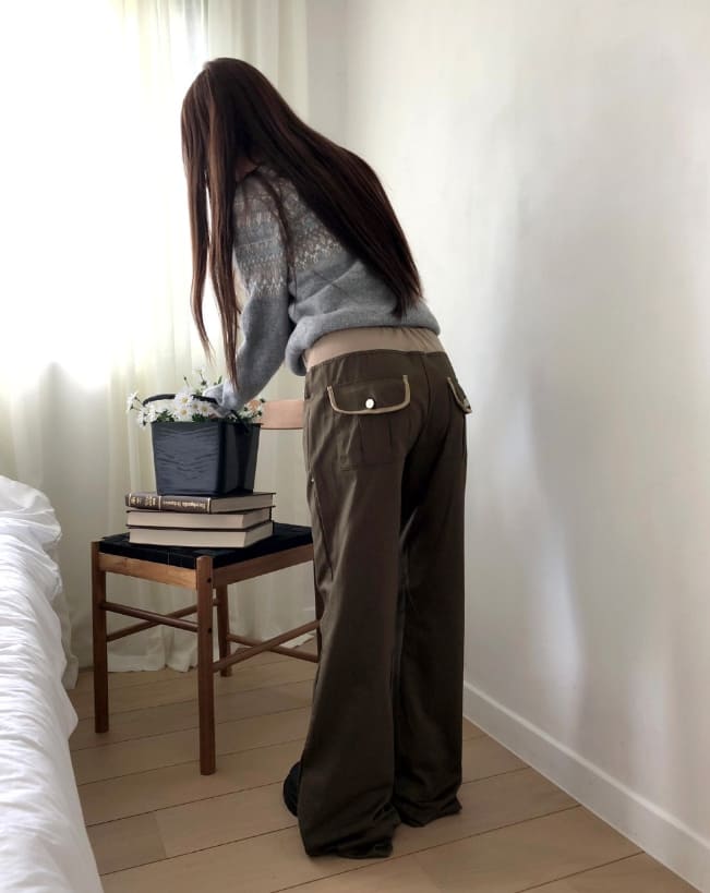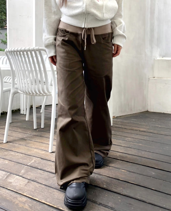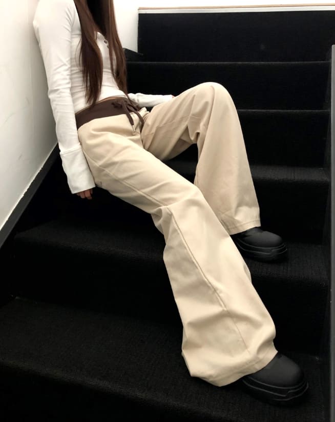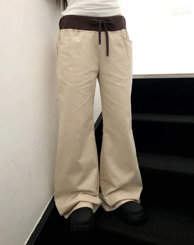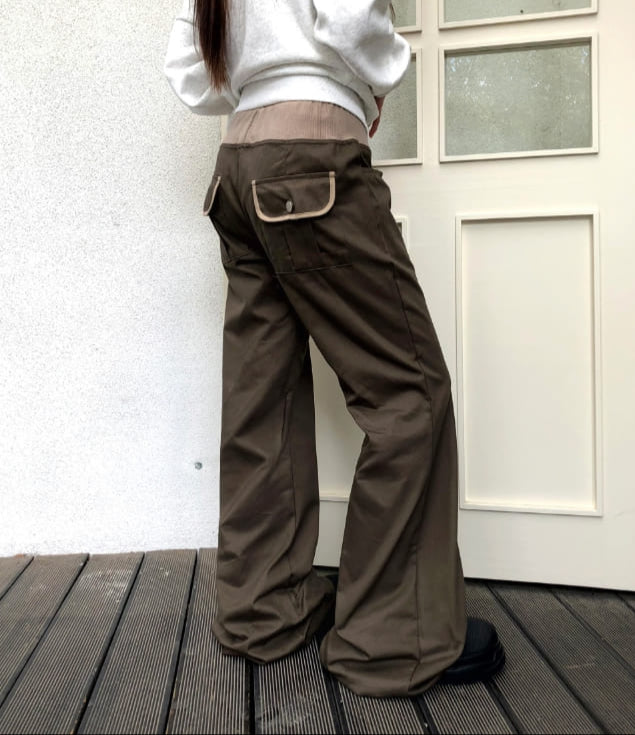 エミン配色バンディングストラップポケットブーツカットトレーニングロングパンツ