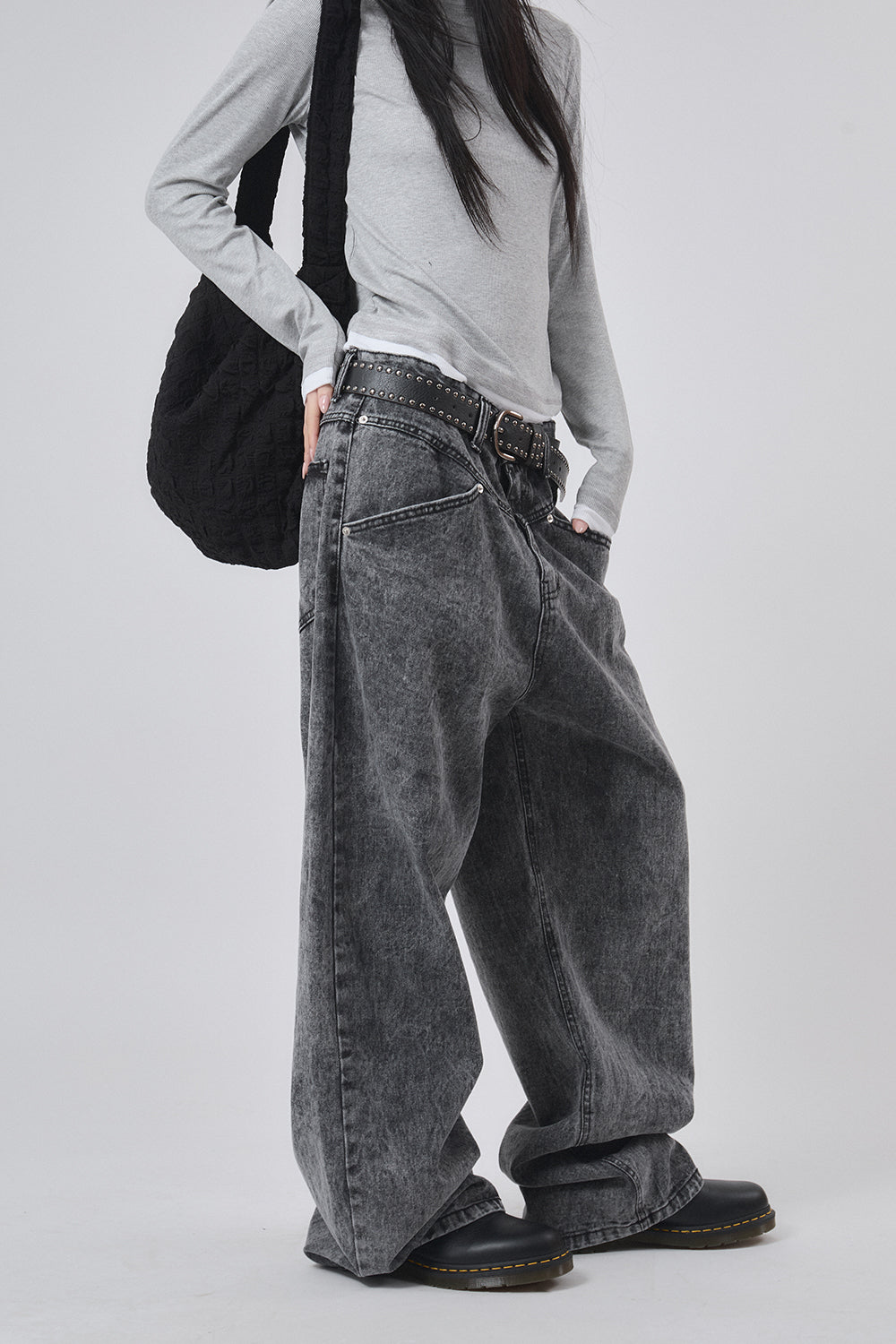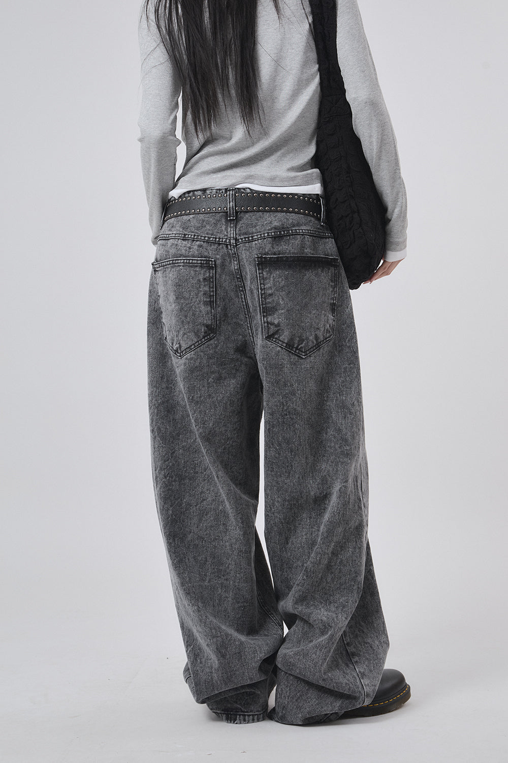 フロントヨークストーンウォッシュ加工デニムパンツ