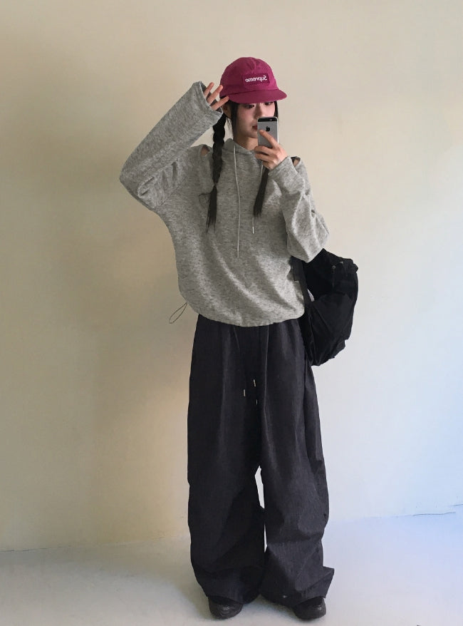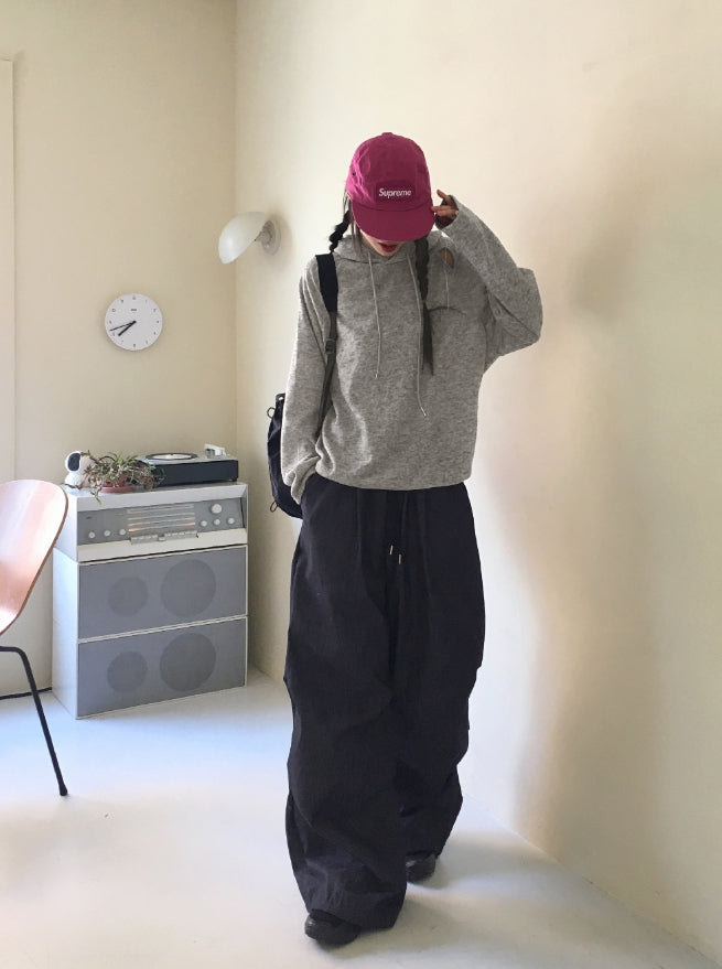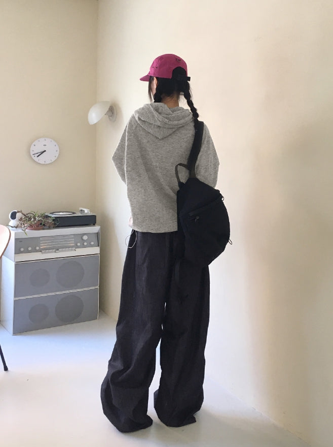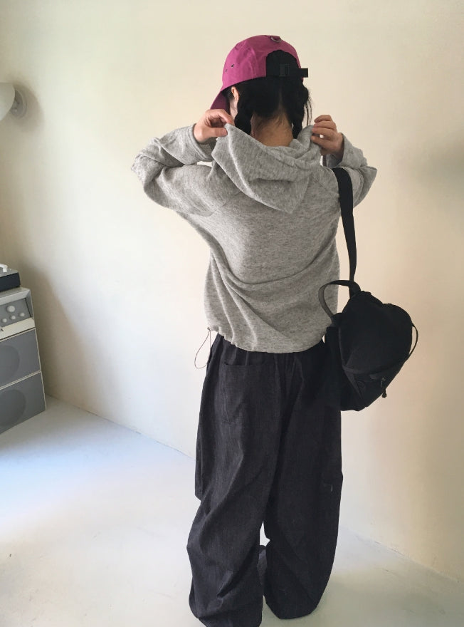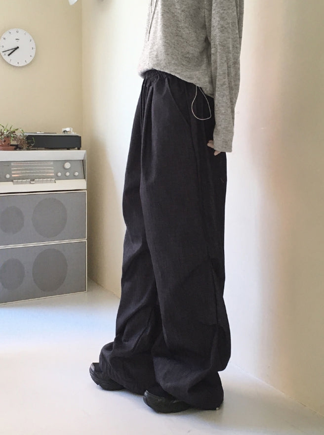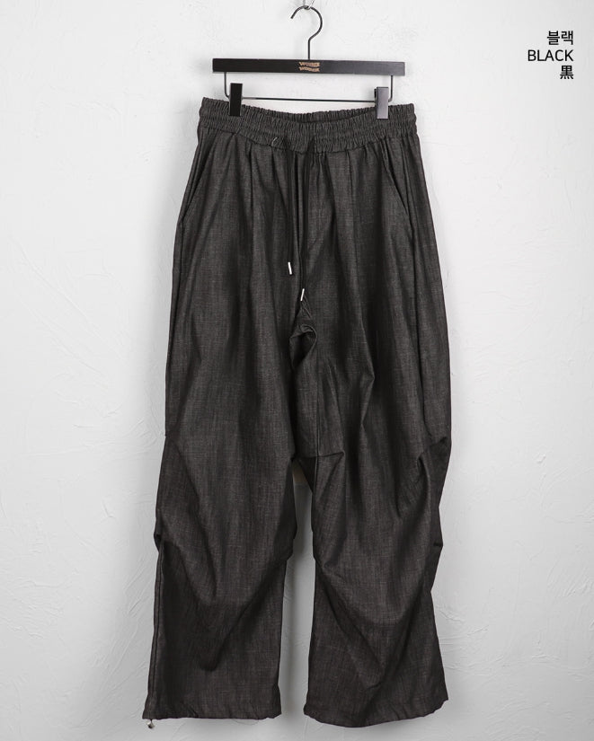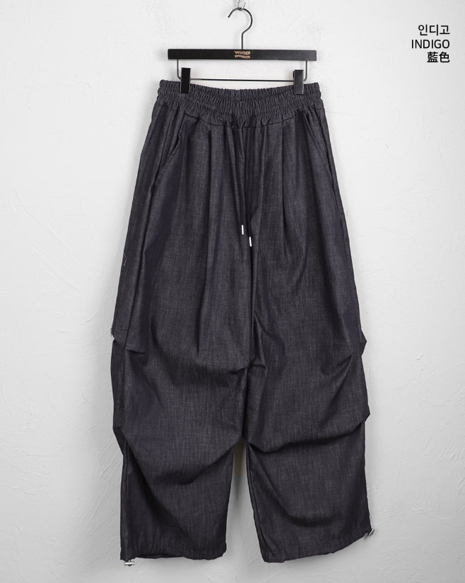Furba Pintuck Shirred Raw Denim Two-Way Long Wide Jogger Pants