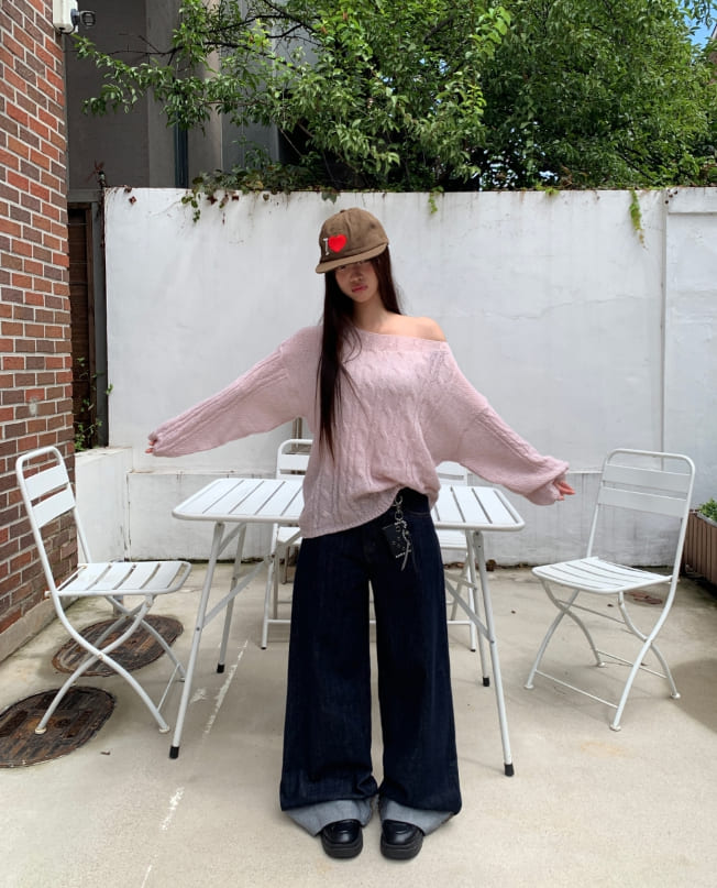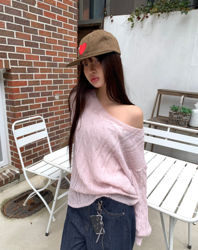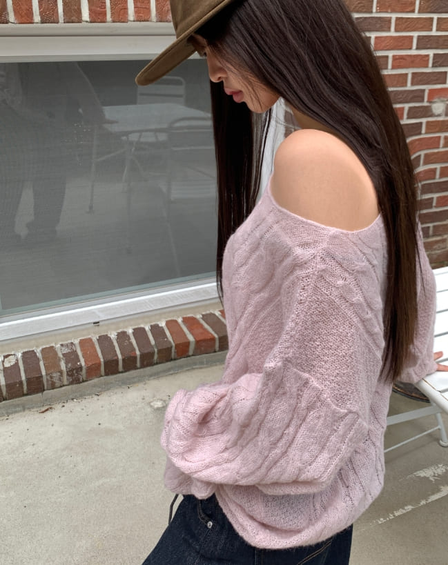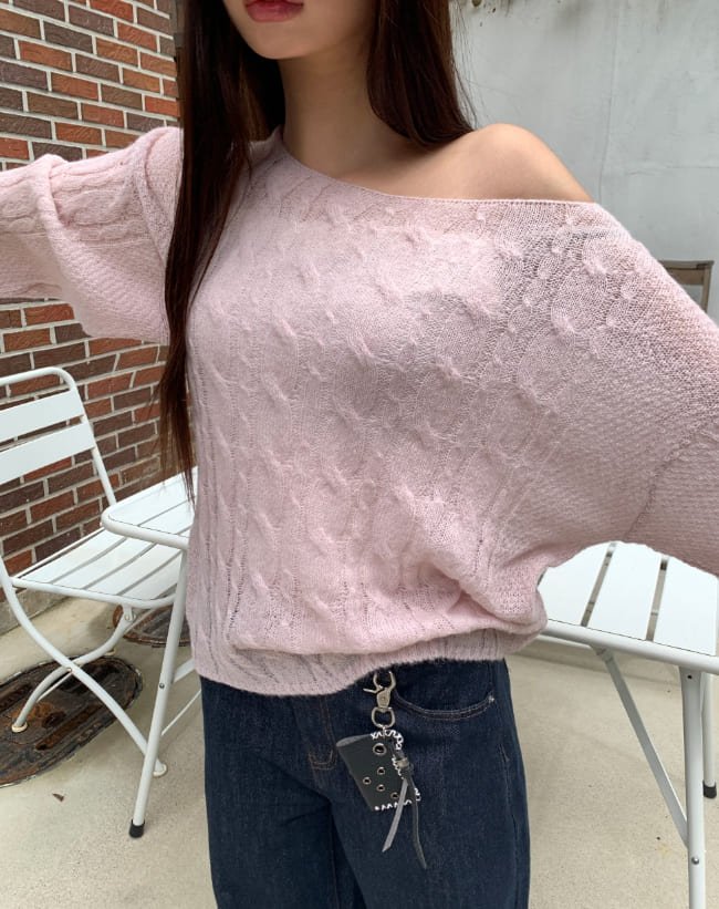 キョリケーブルパターンワンオフショルダー長袖ニット