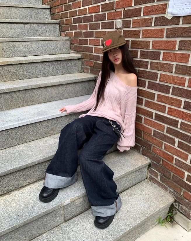 教義プレッツェルパターンワンオフショルダー長袖ニット