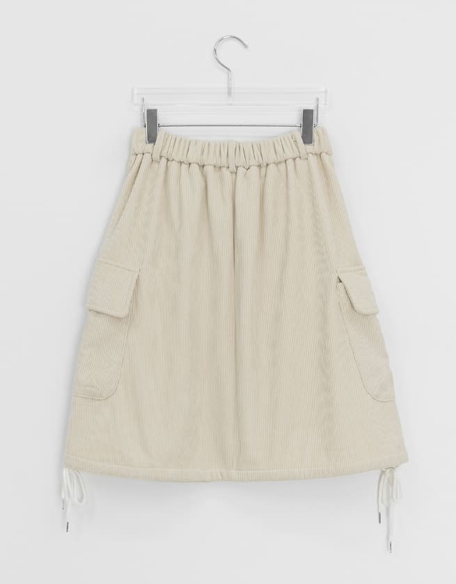 ヘムコーデュロイ裏起毛カーゴバンディングミディスカート