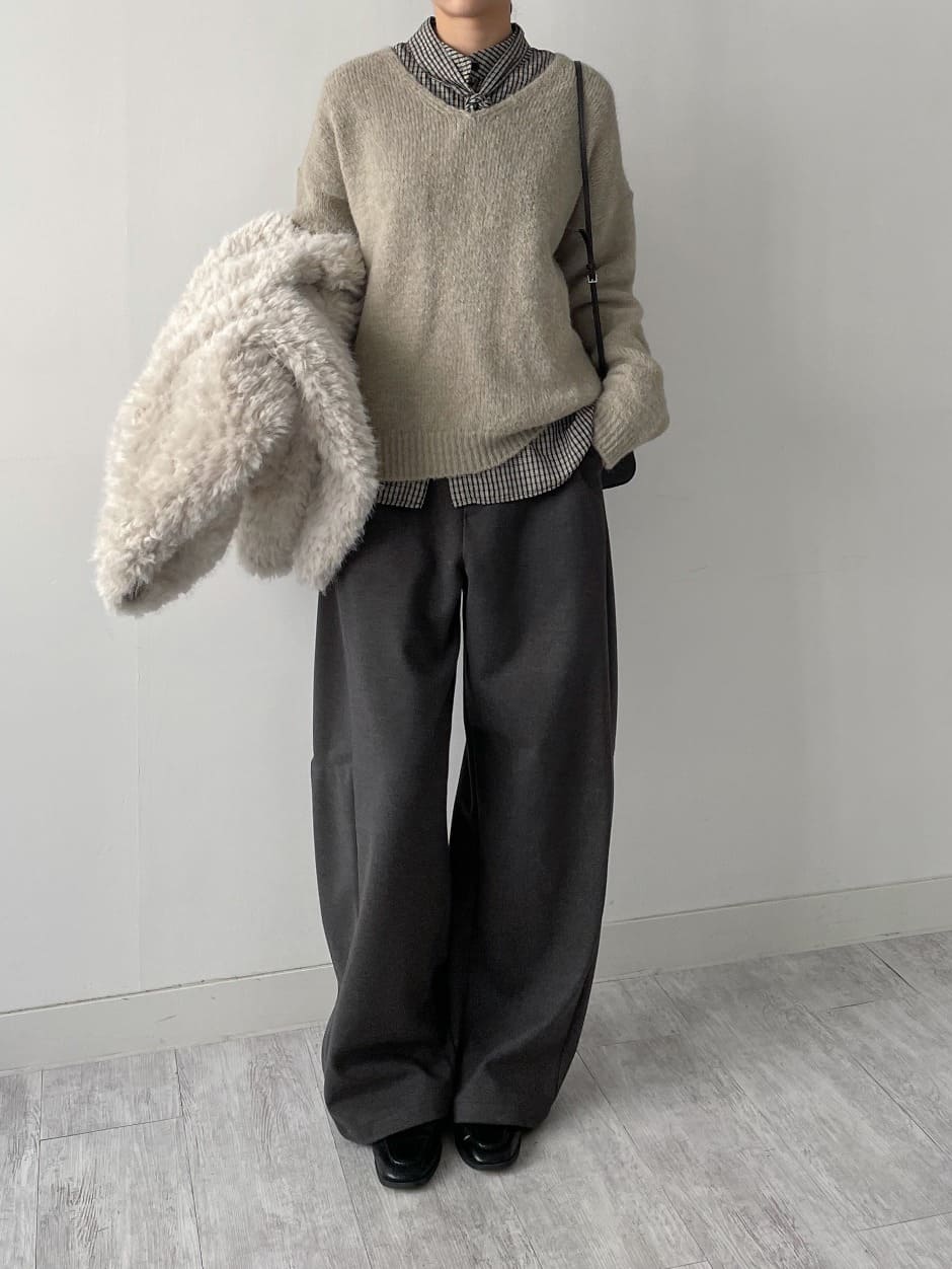 -169cm / 51kg / top 55(S) / bottom 27 / shoes 240mm / Khaki Beige / Light Gray