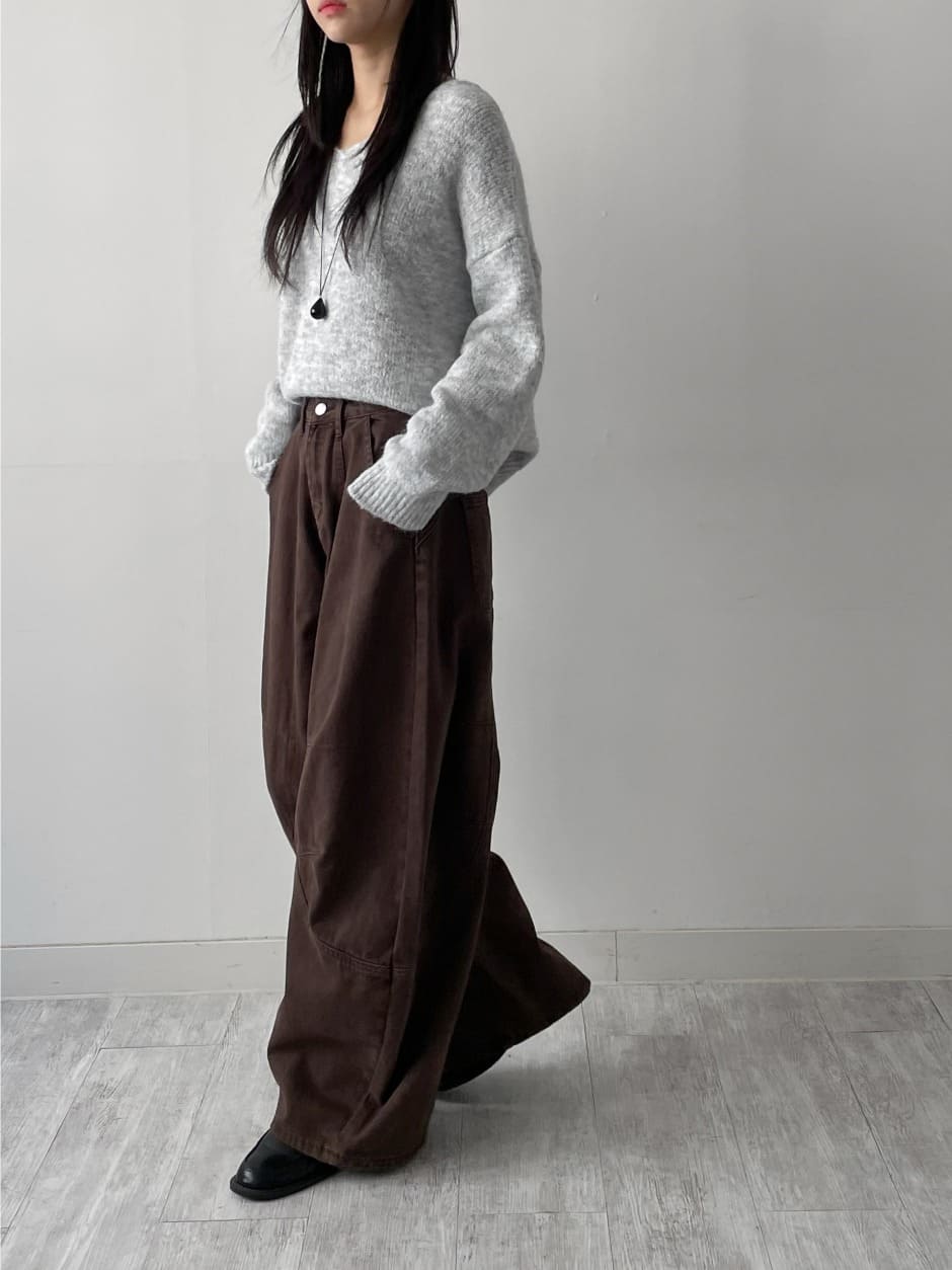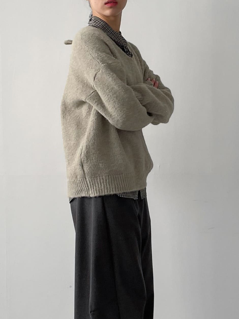 ヘレVネックストラップニット
