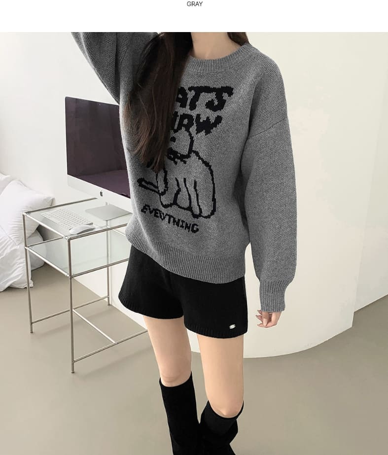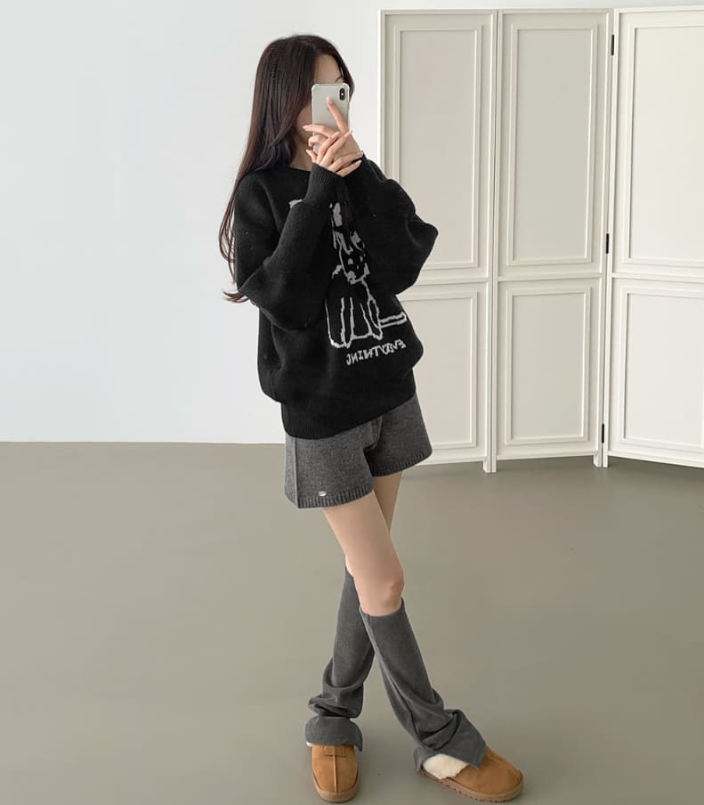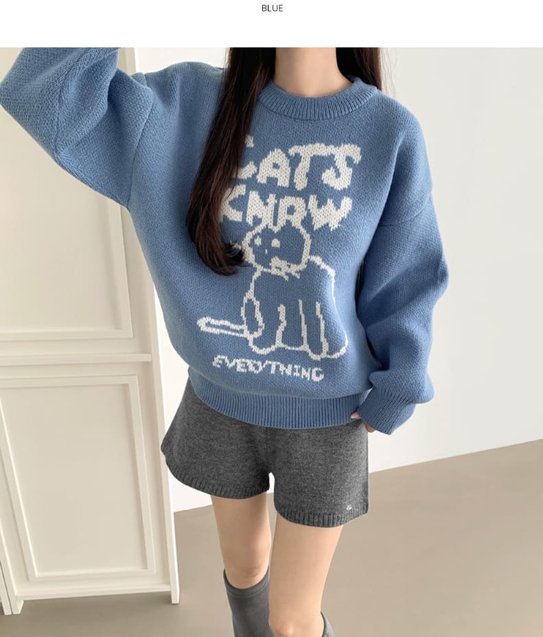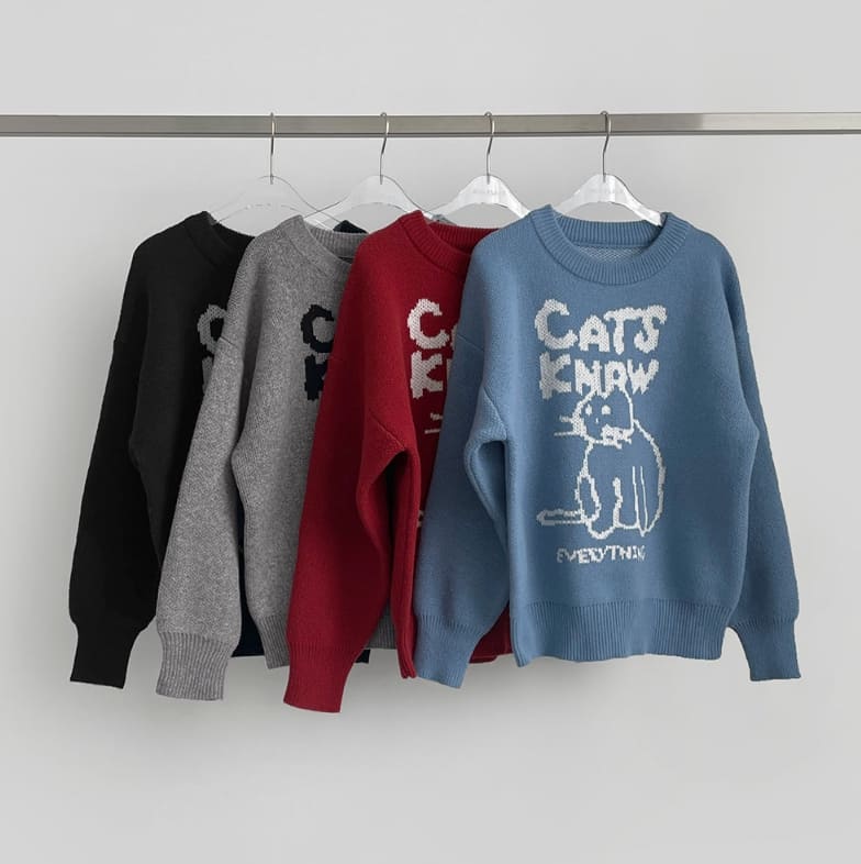 High Quality Cat Embroidery Thick Shibori Long Sleeve Knit