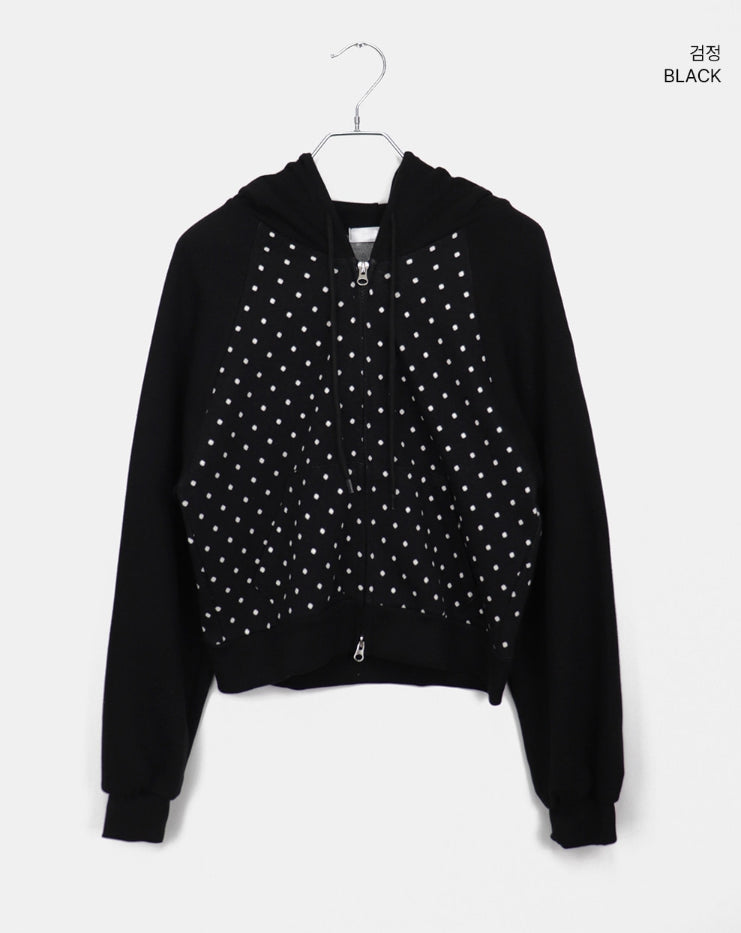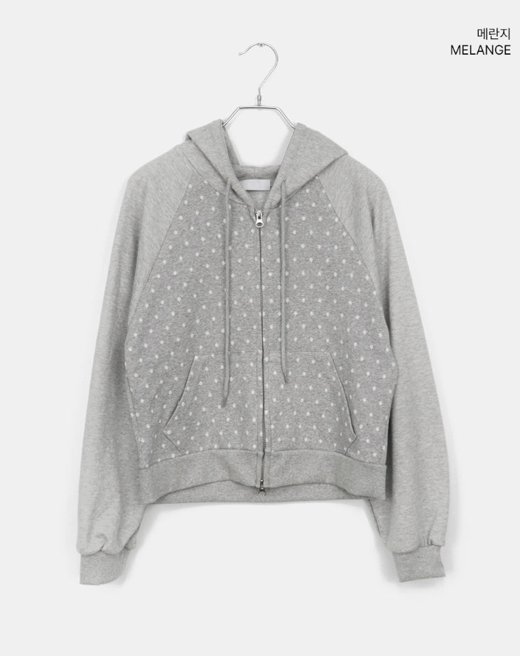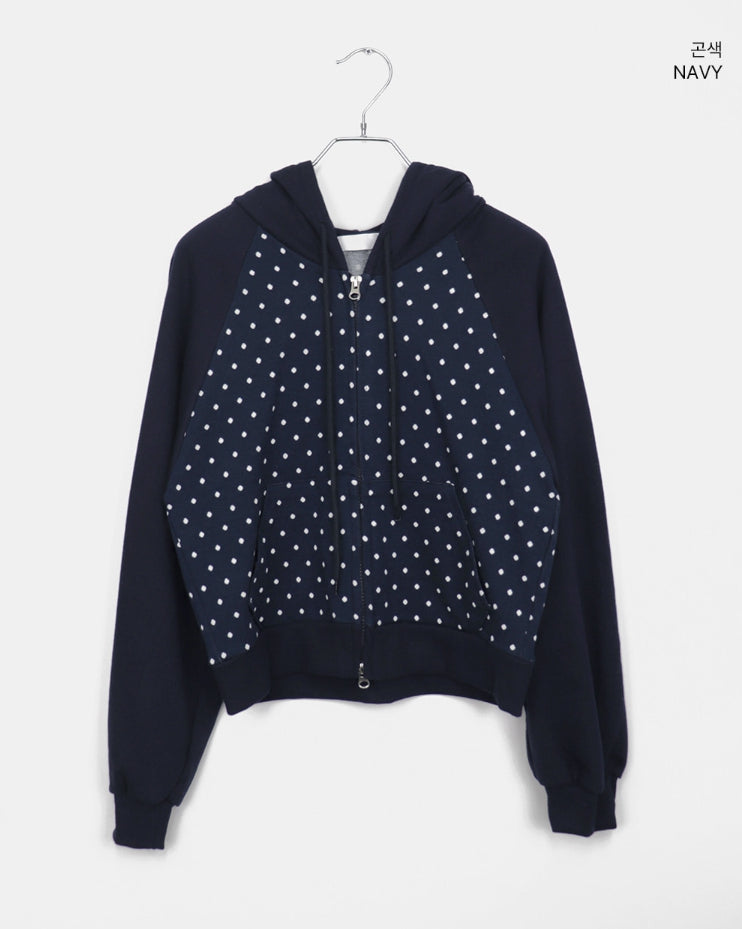 Homer Dot Raglan Two-Way Zipper Long Sleeve Hood Zip-Up