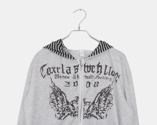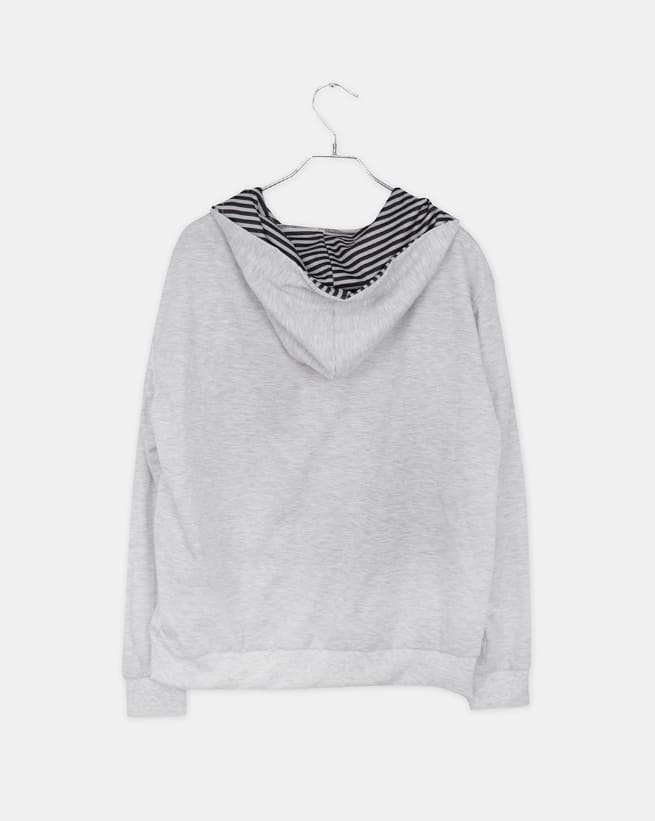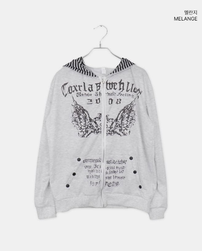 Hummus Lettering Print Stripe Color Matching Snap Button Long Sleeve Hood Zip-Up