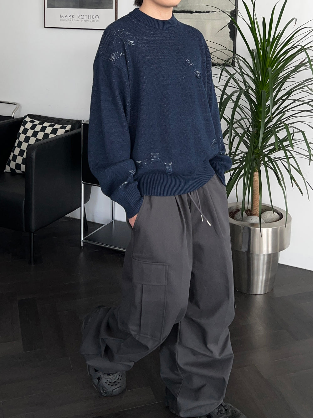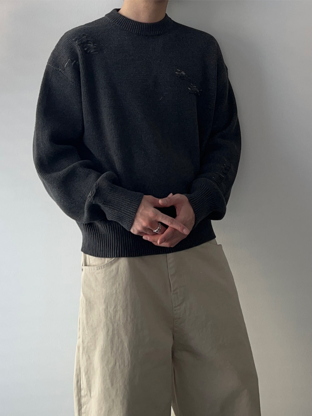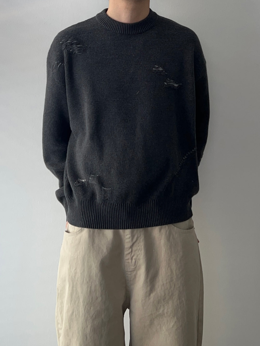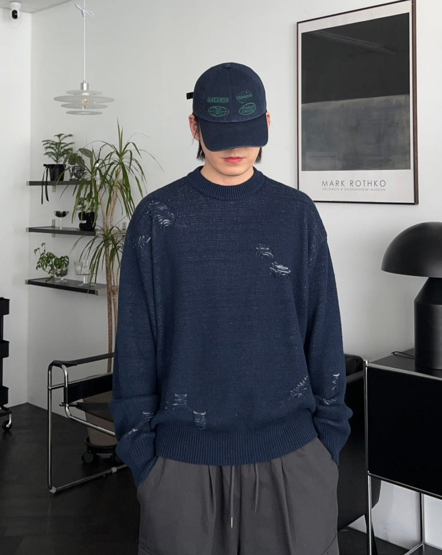ジャギドダメージコットンニット