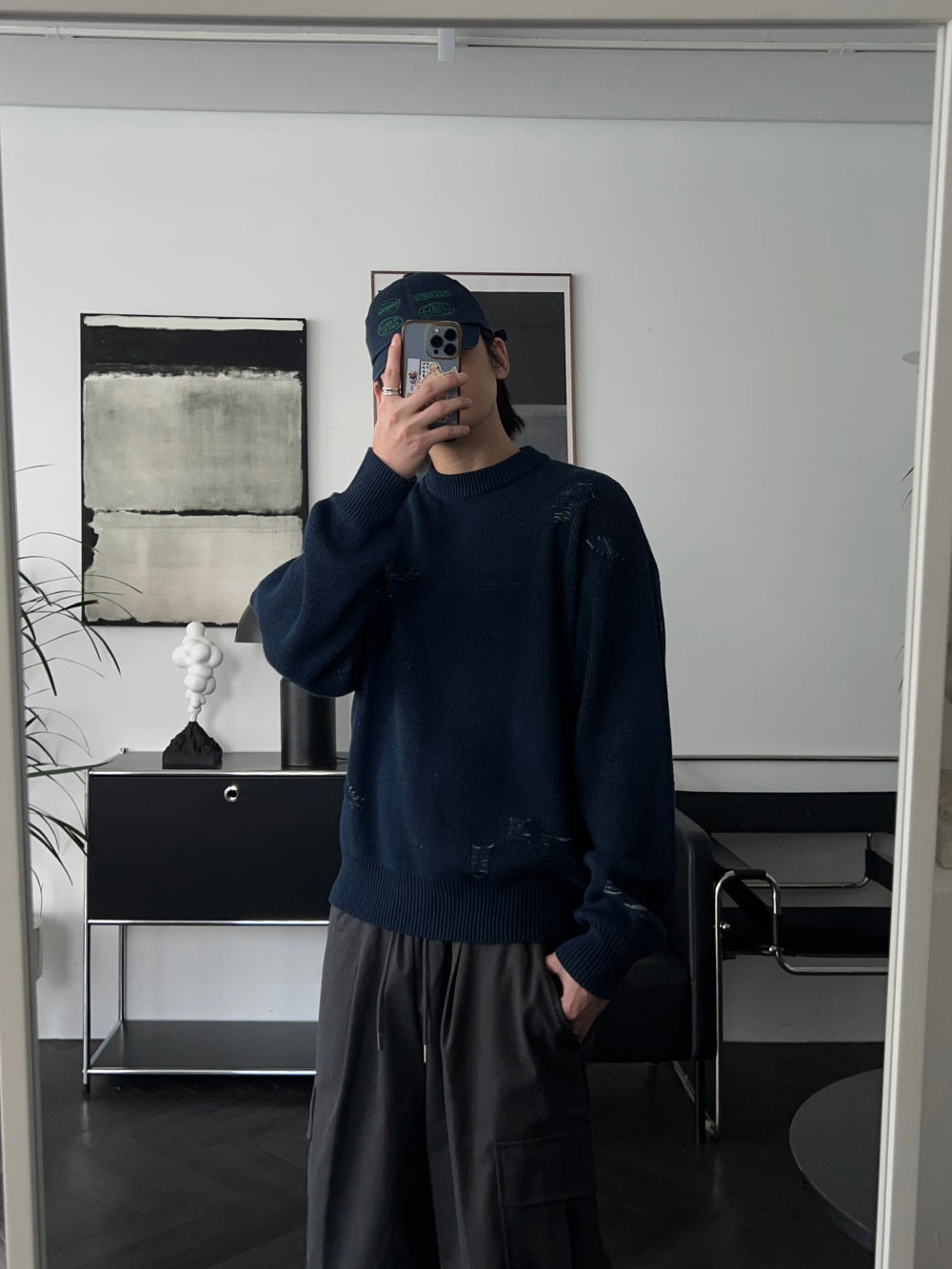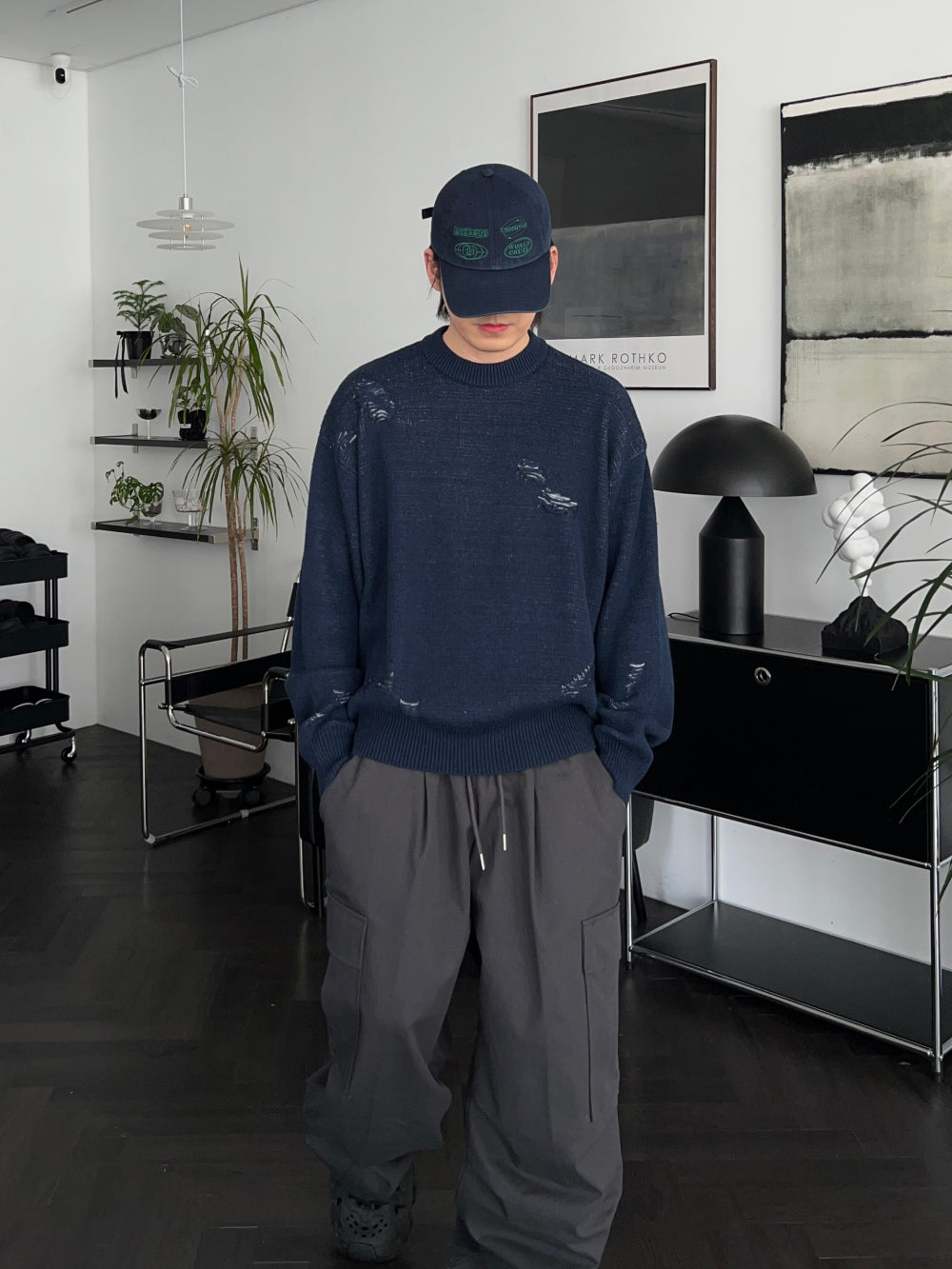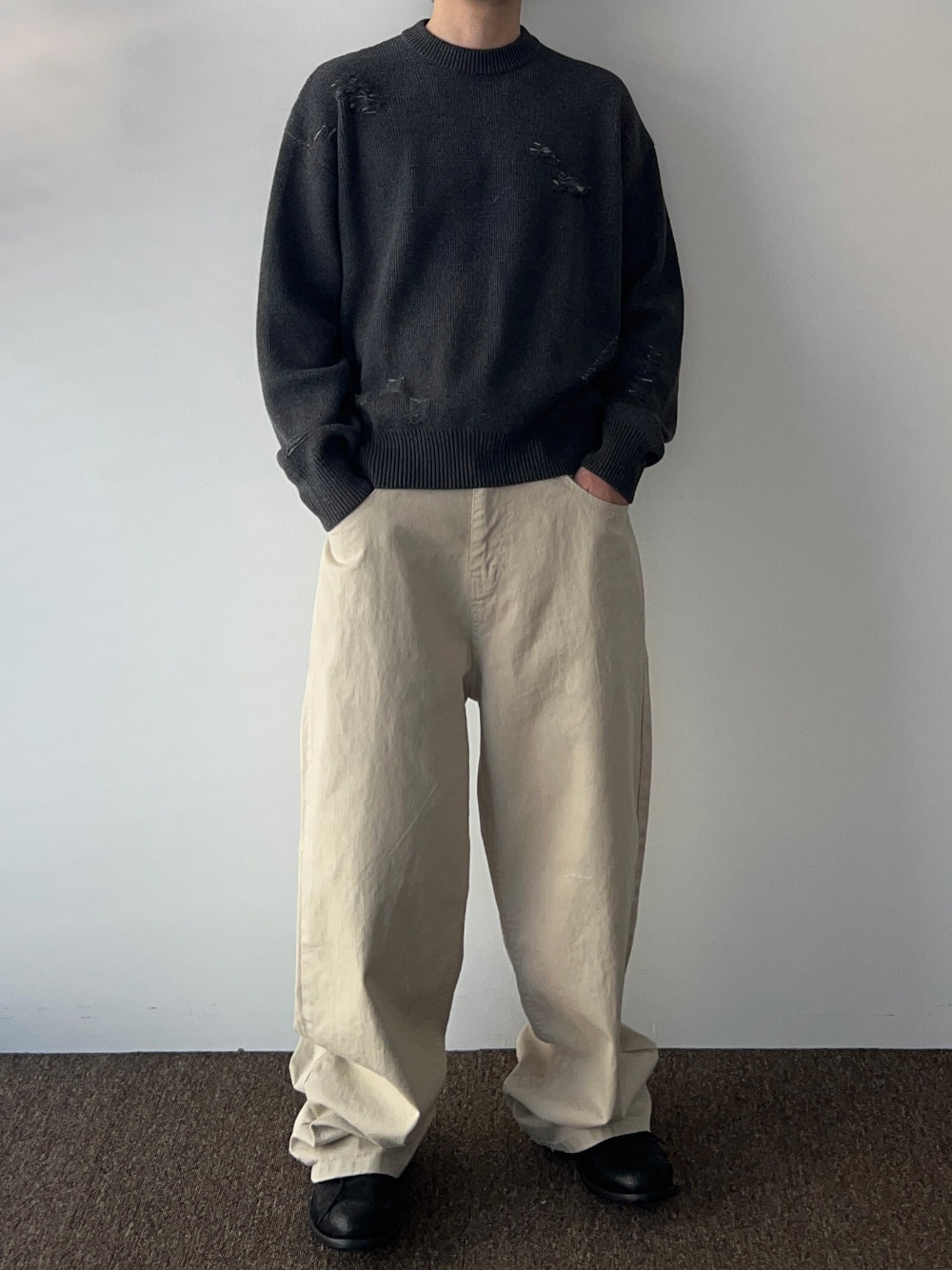 ジャギドダメージコットンニット