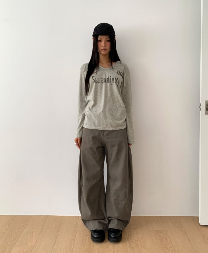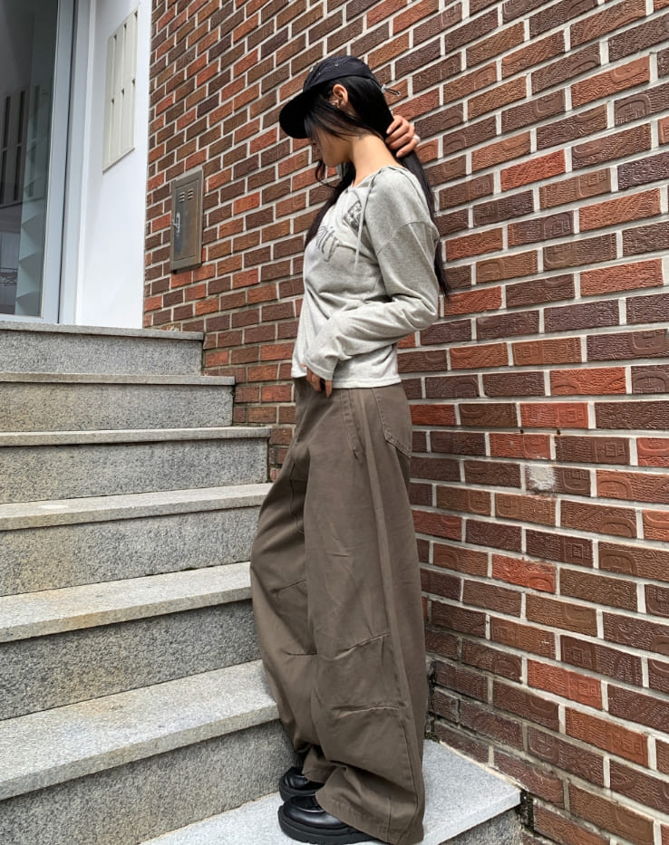 ジュリー切開ピンタックバルーンコットンロングパンツ