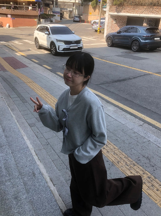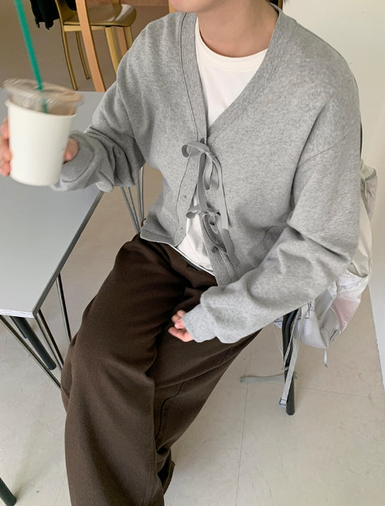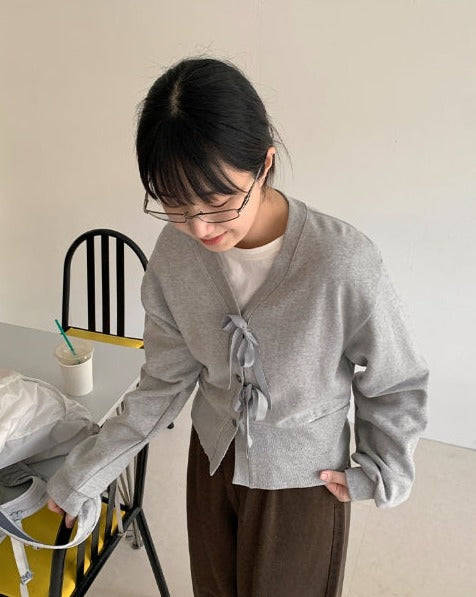 Koue Crop Ribbon Cardigan