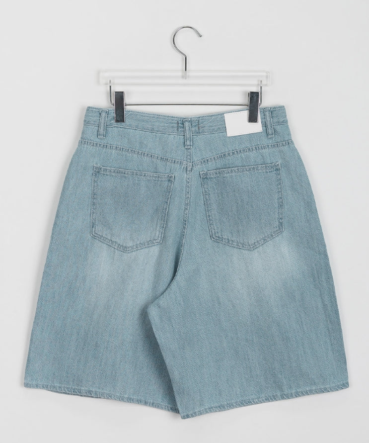 レハウォッシュ加工ハーフデニムパンツ