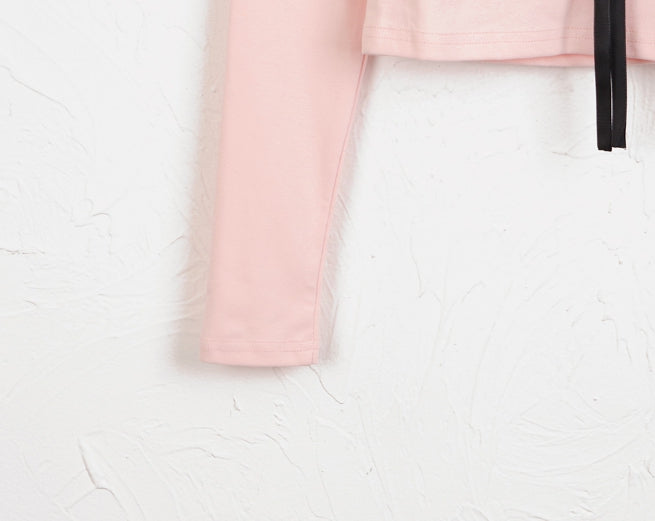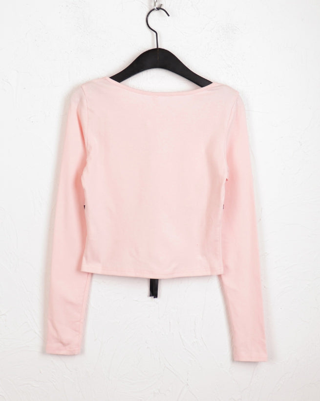 ルアーバレーコアリボンカラーハートネック長袖Tシャツ