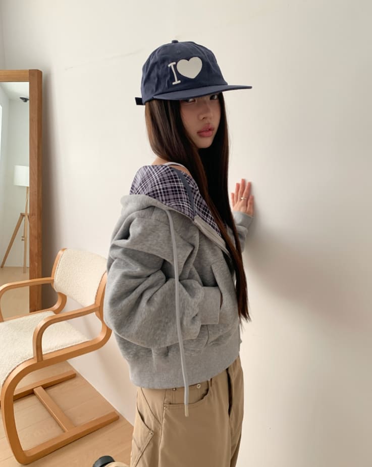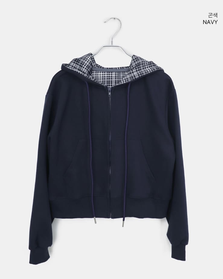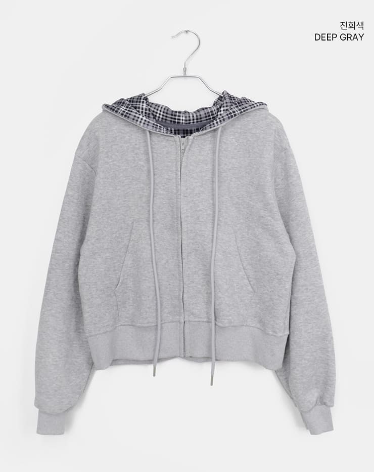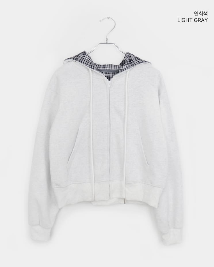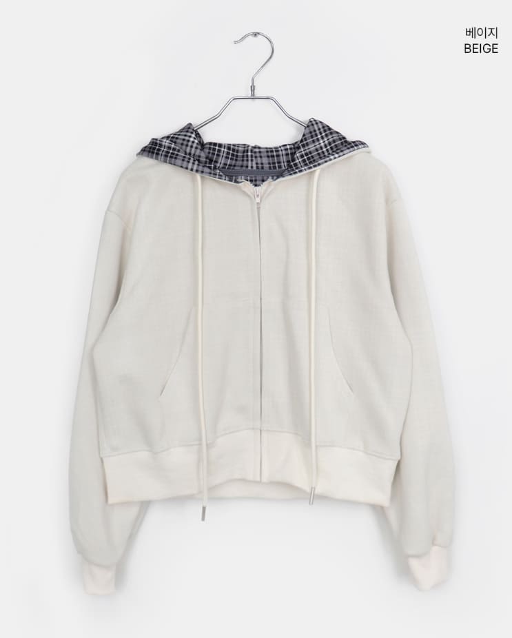 Mechi check color matching long sleeve hood zip-up