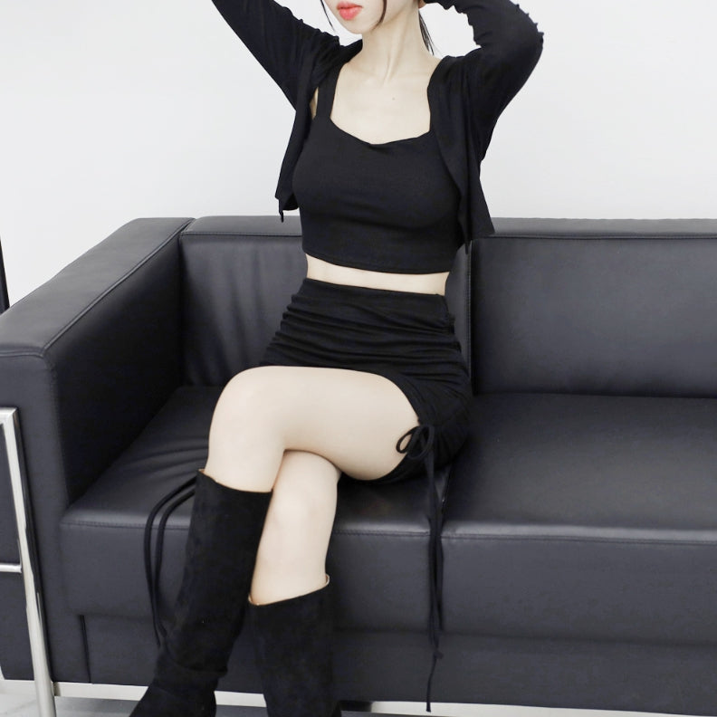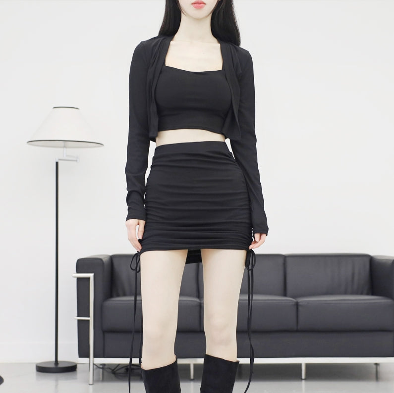Mudio Cardigan + Sleeveless + String Skirt Set