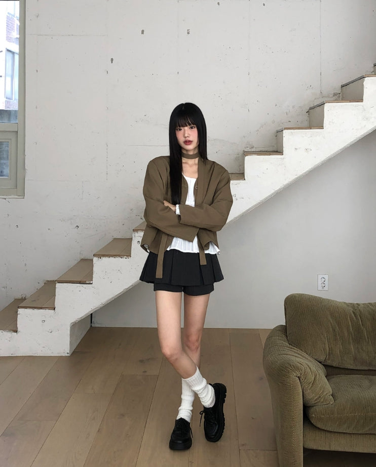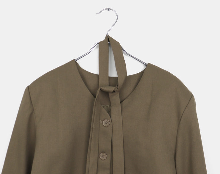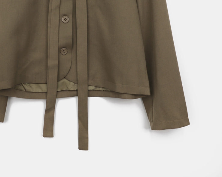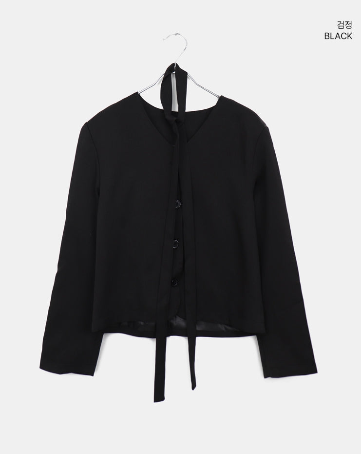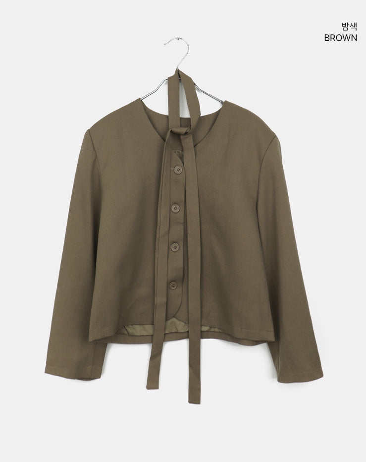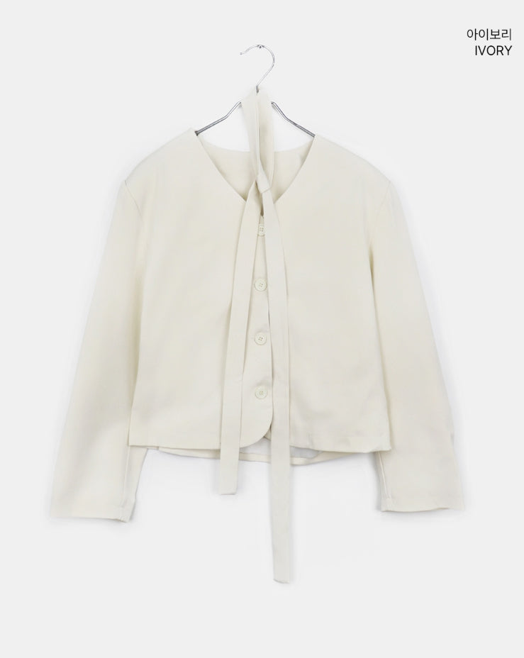 [muffler set] Tur no-collar V-neck button long-sleeved jacket