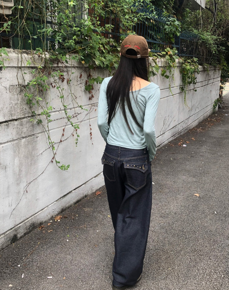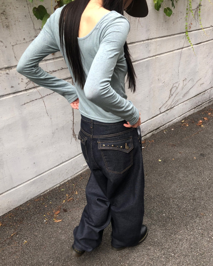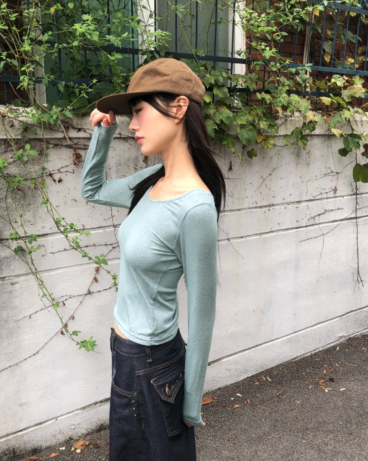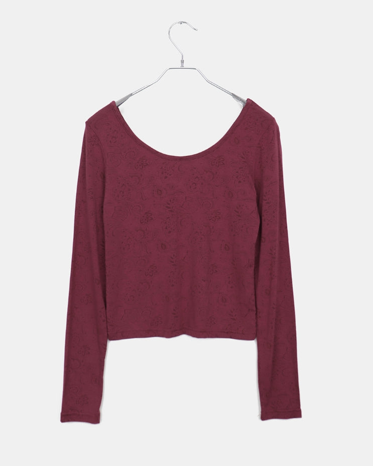 ムールフラワーパターンラウンドネック長袖Tシャツ