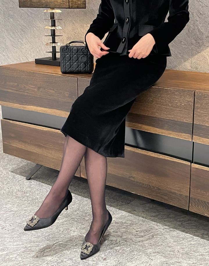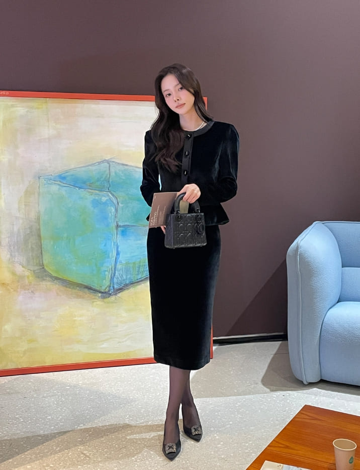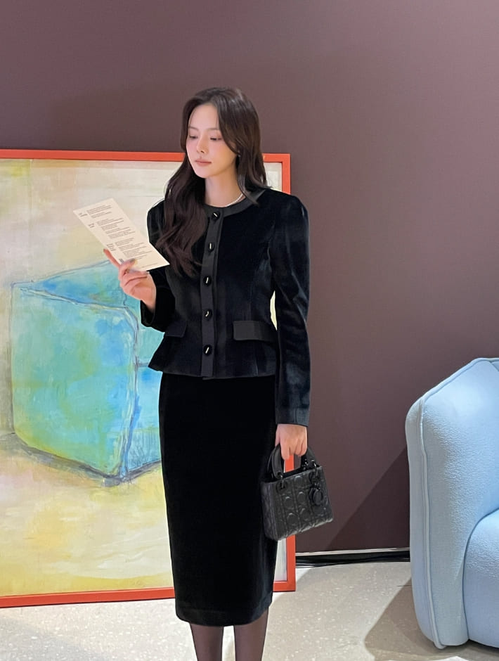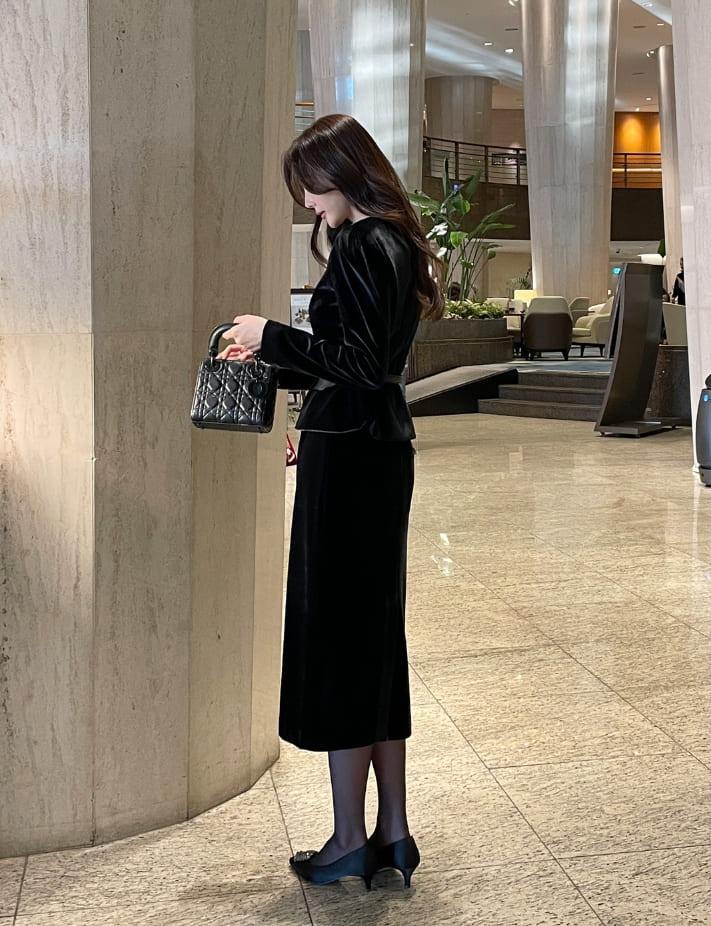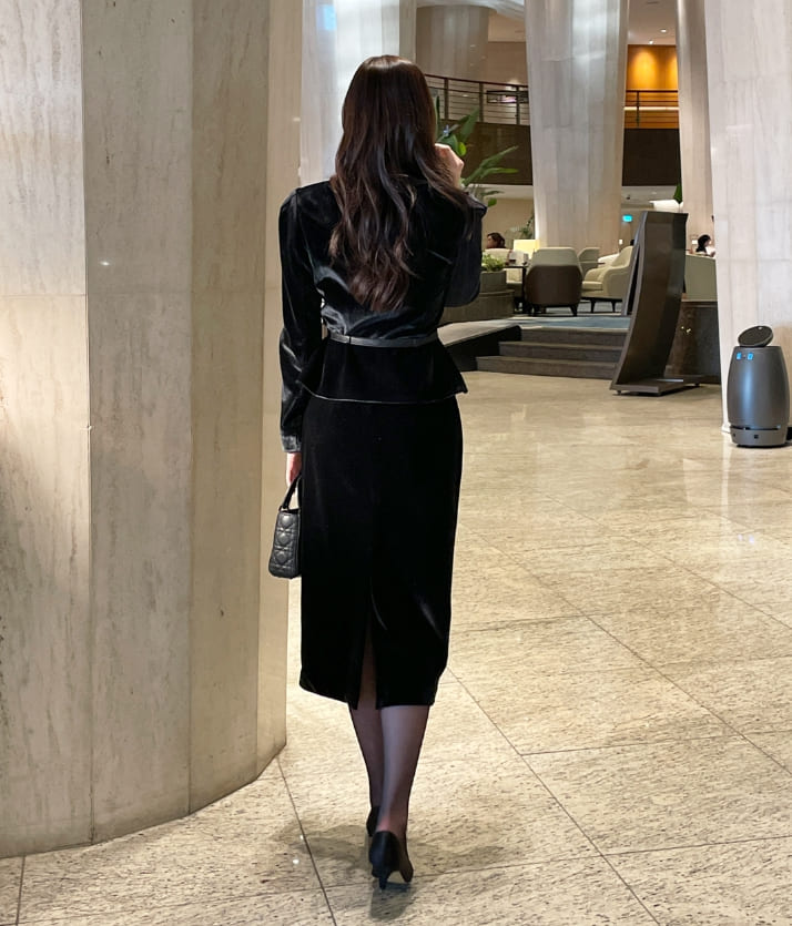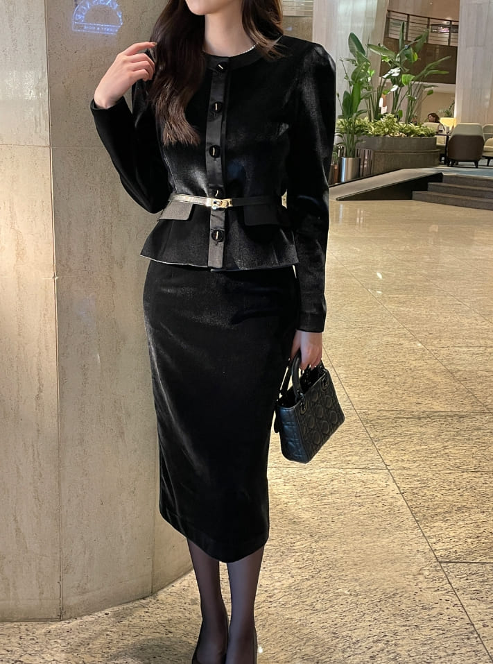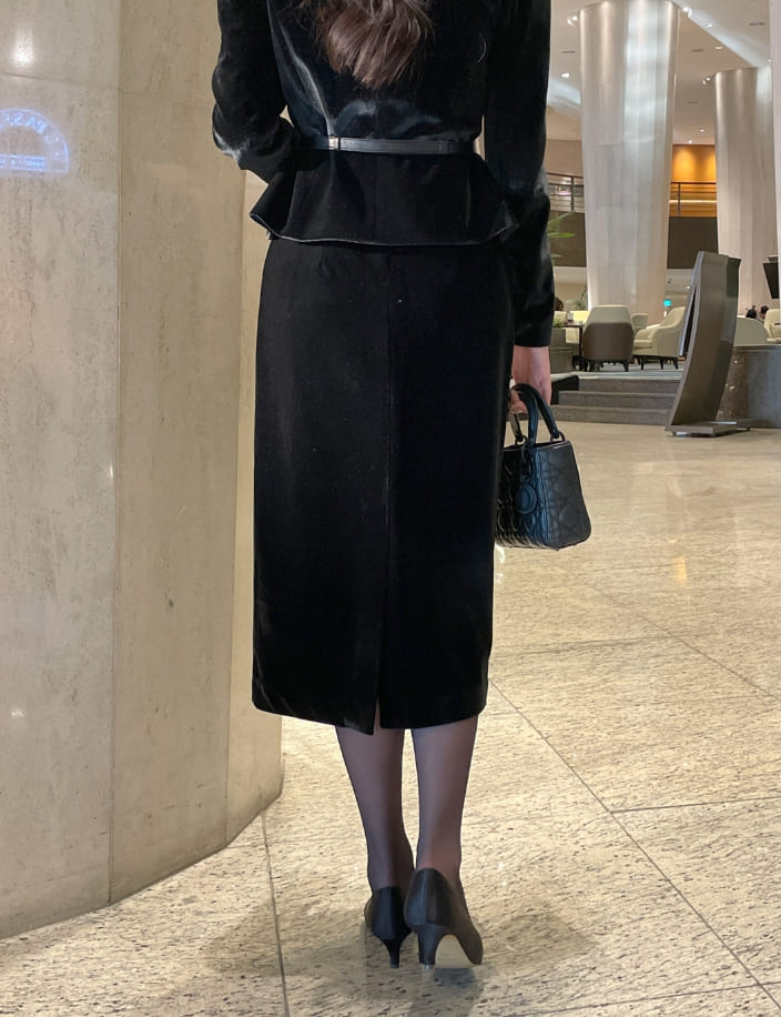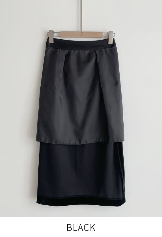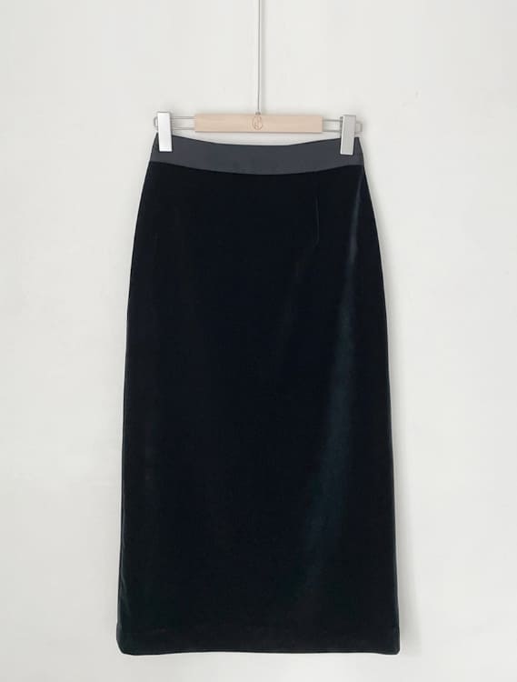 Naiz Satin Color Matching Span Velvet Long Skirt