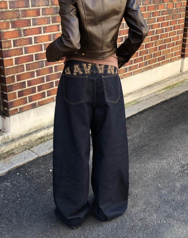 ナミレオパード刺繍パッチステッチバルーンフィットデニムロングパンツ