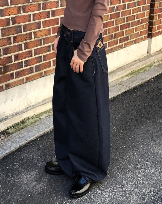 Nami Hopi Embroidery Patch Stitch Balloon Fit Denim Long Pants