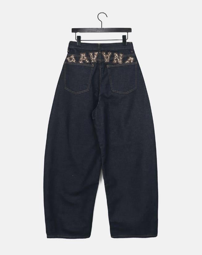 Nami Leopard Embroidery Patch Stitch Balloon Fit Denim Long Pants