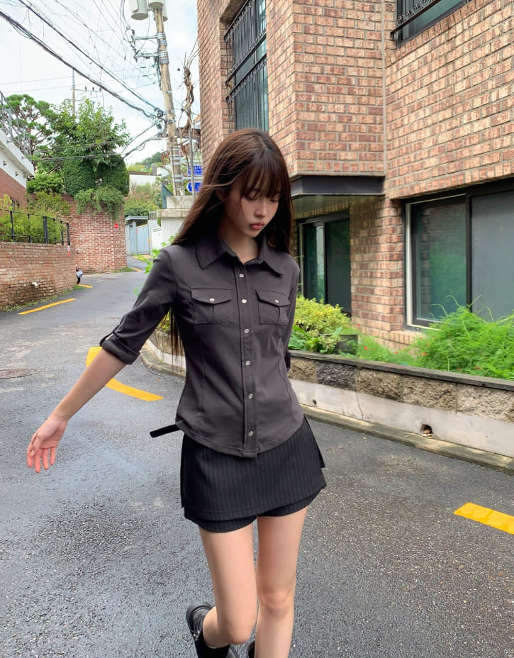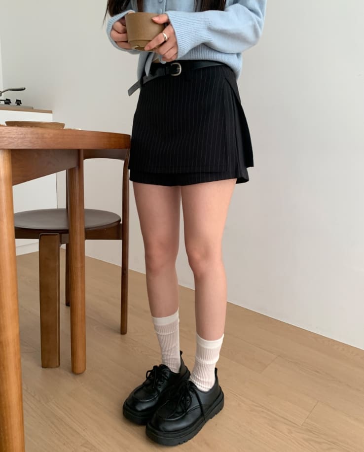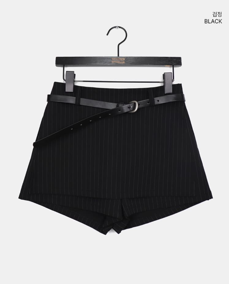 Nimu Stripe Pattern Belt Short Skirt Pants