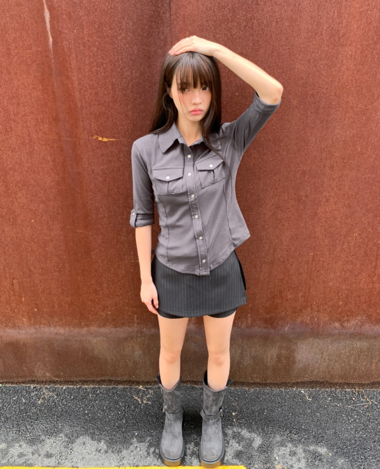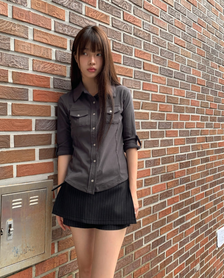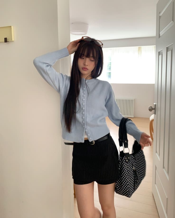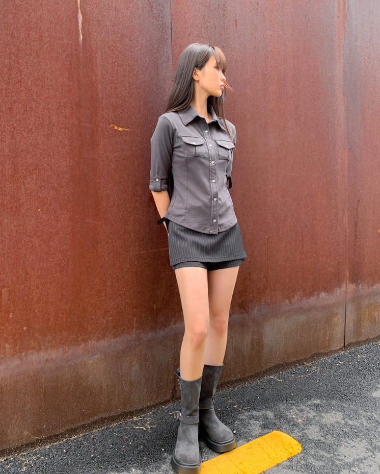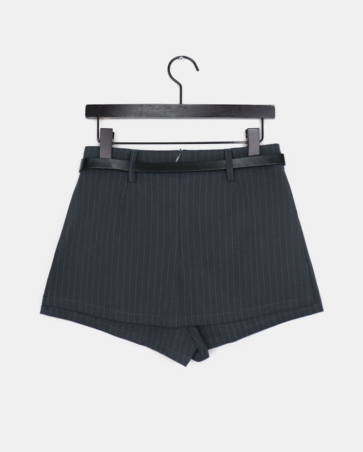 ニムストライプパターンベルトショートスカートパンツ