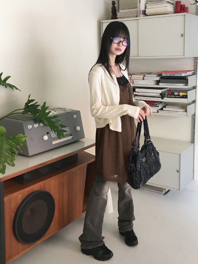 Noi Vintage Washing Low-Rise Long Bootcut Denim Pants