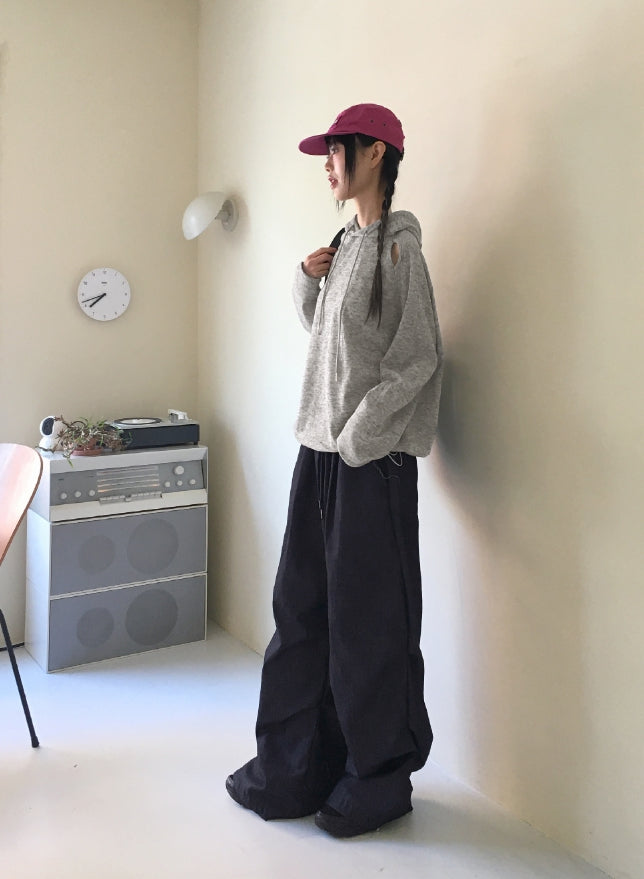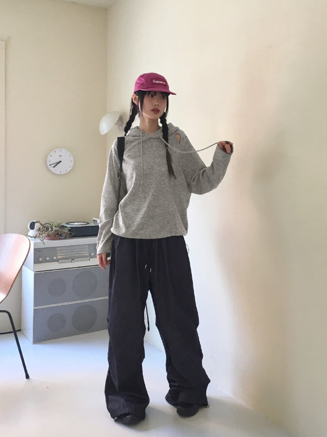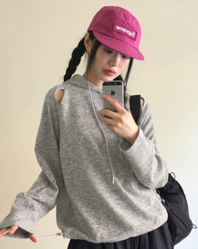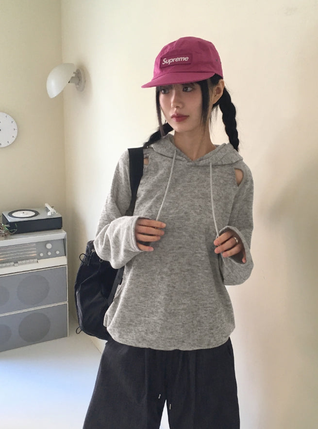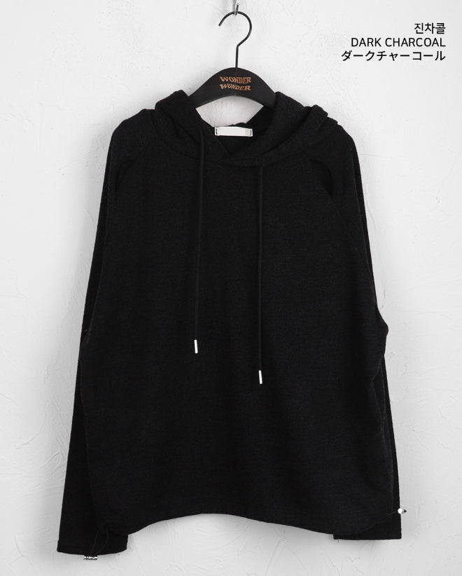 Onbee Shoulder Silt String Box Long Sleeve Hoodie